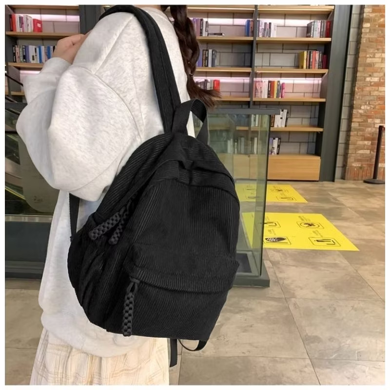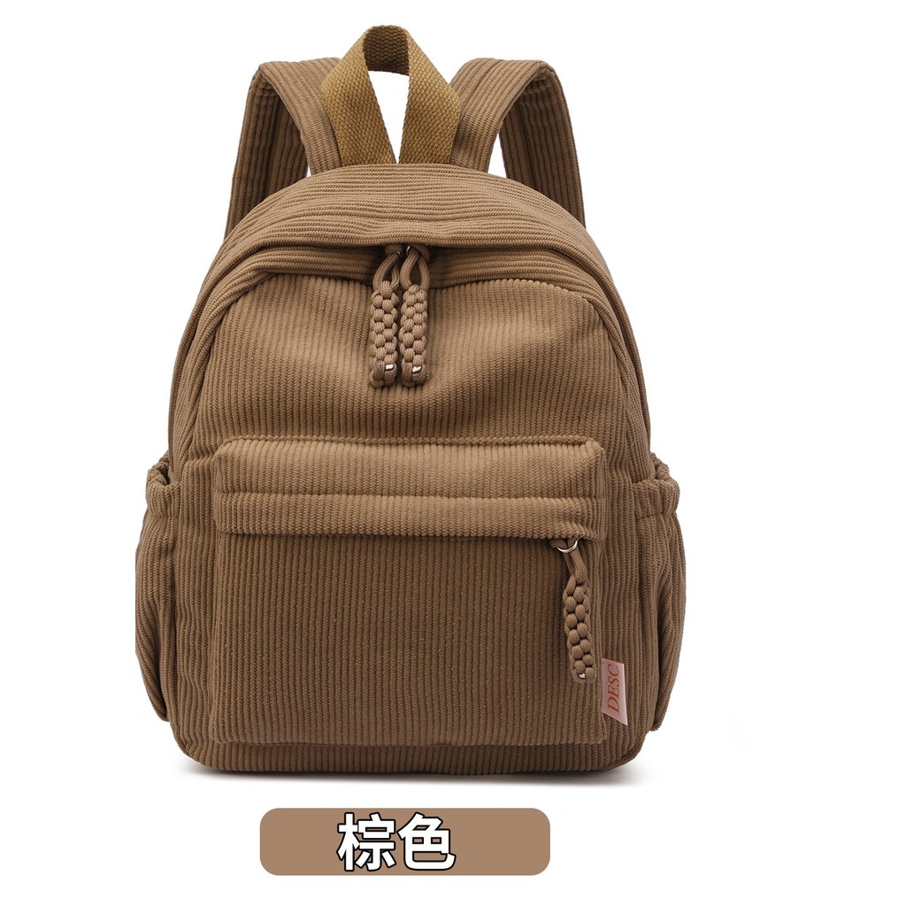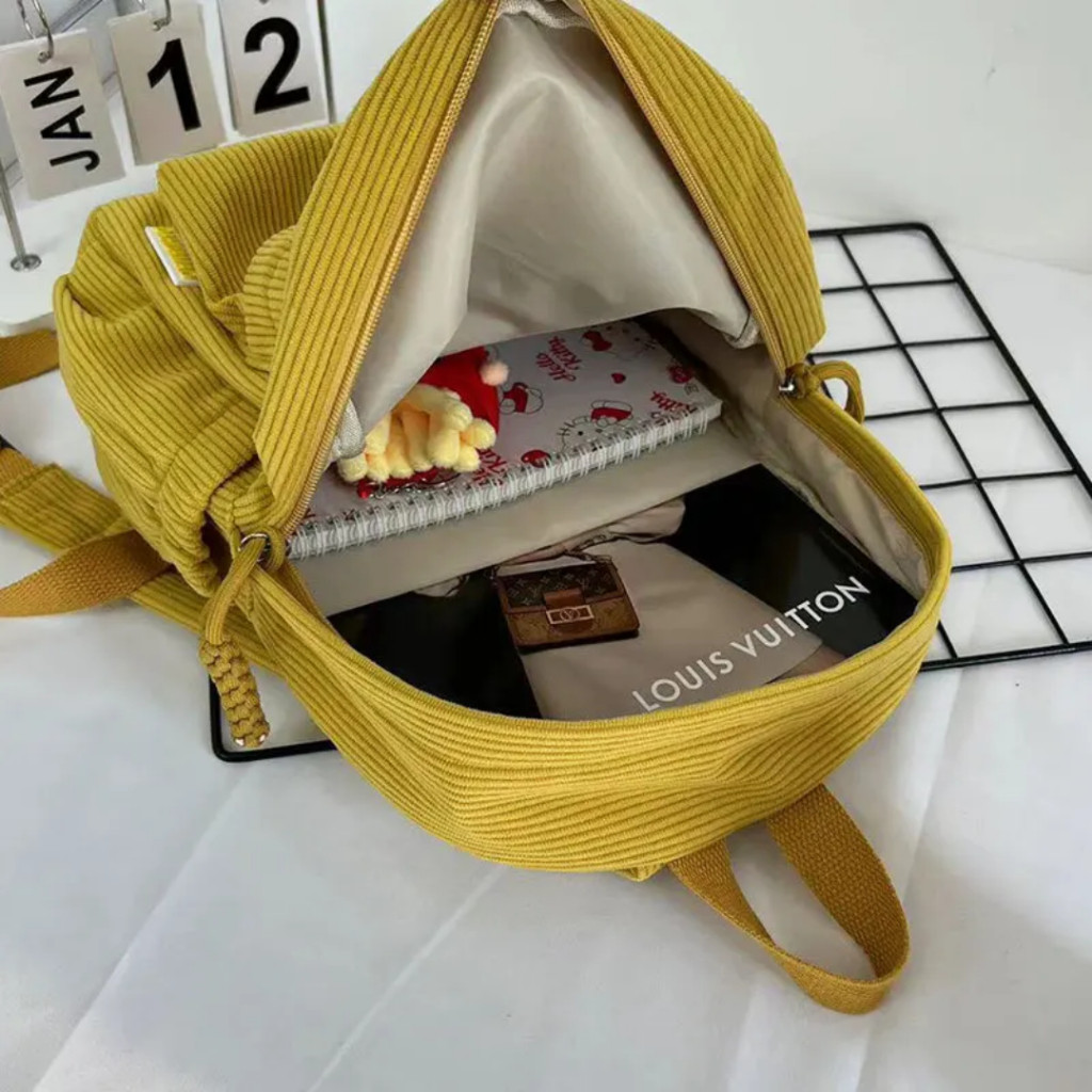 Mochila Pequena Feminina De Veludo Cotelê (30 x 26 x 10) Estilo Juvenil Casual Escolar Trabalho