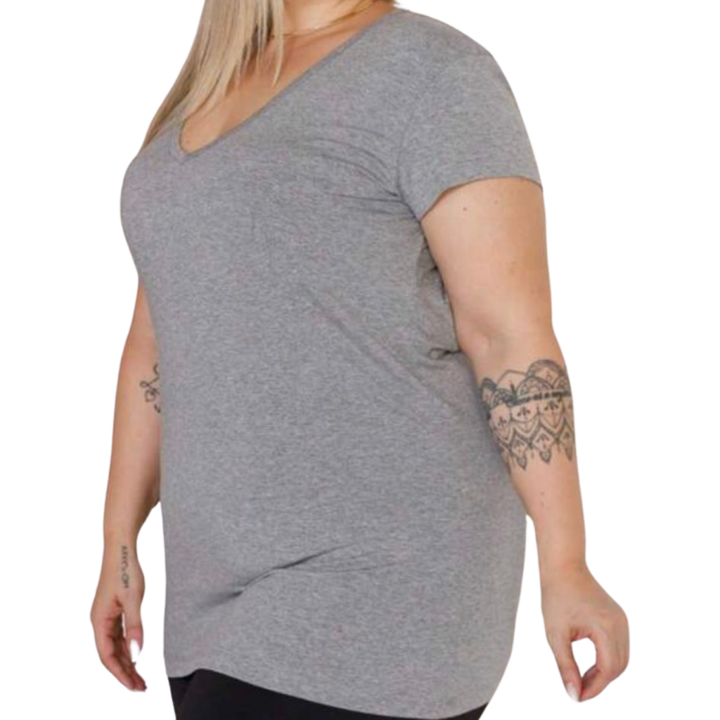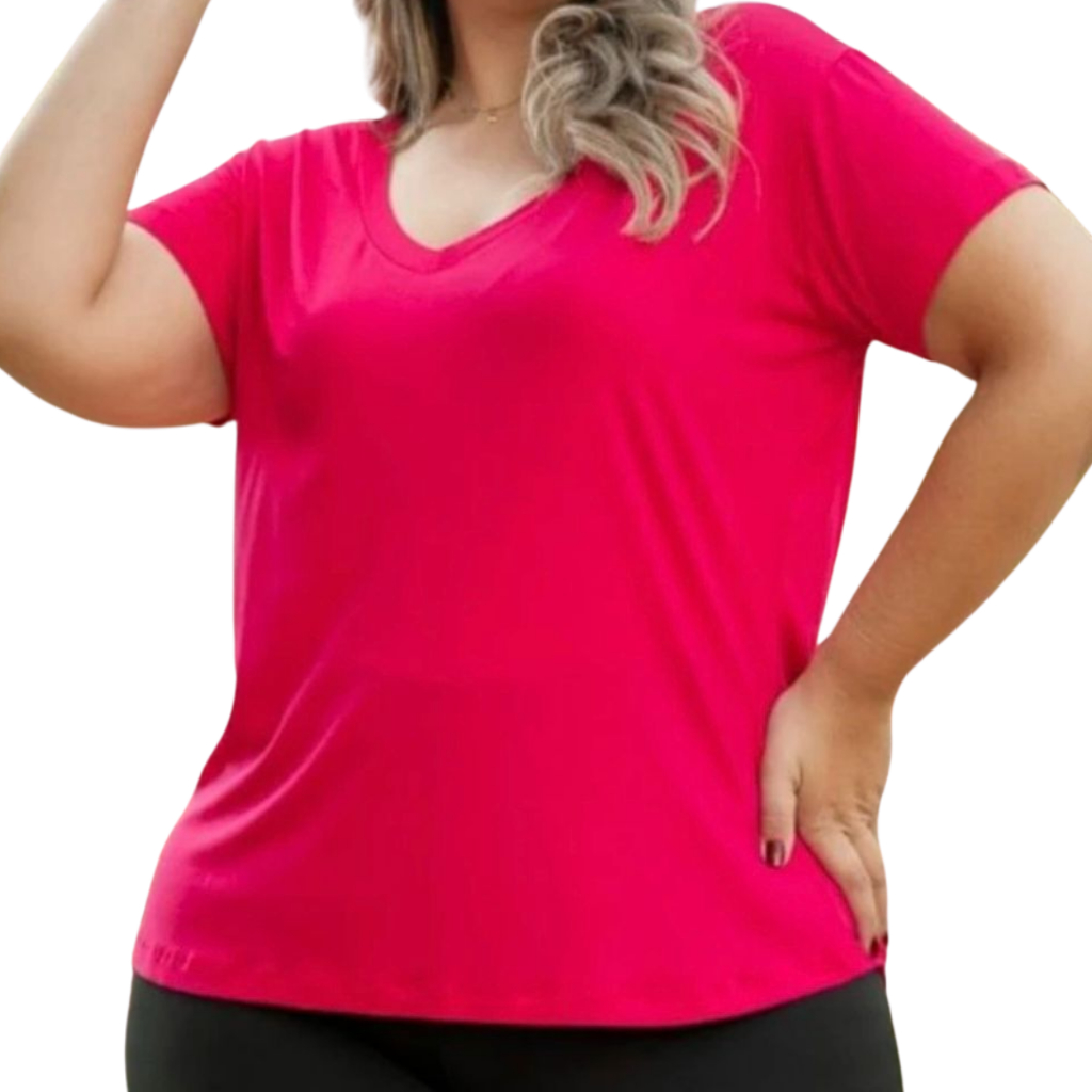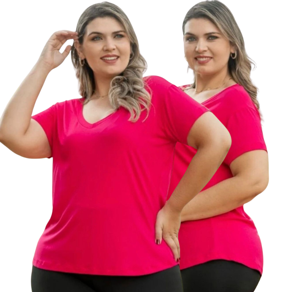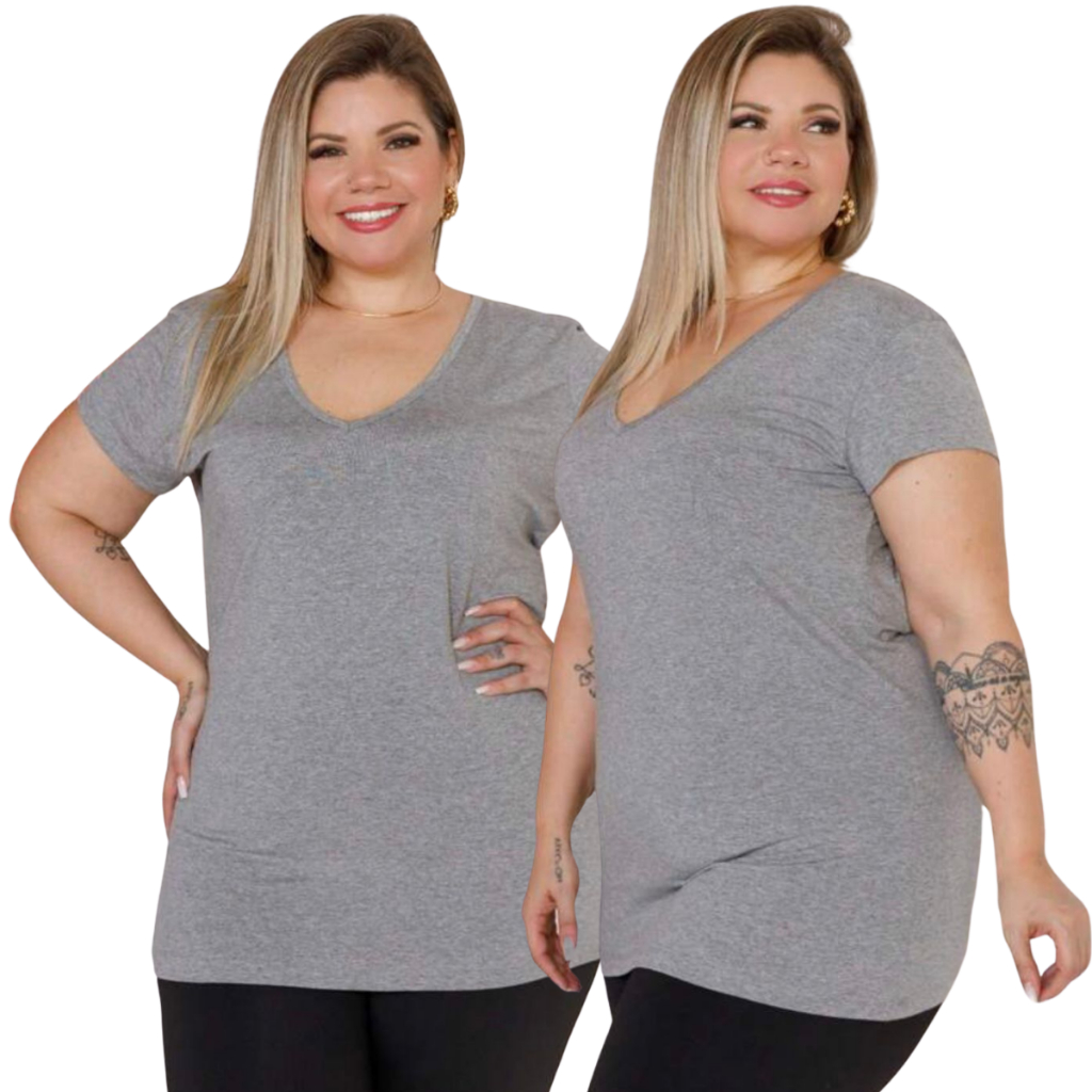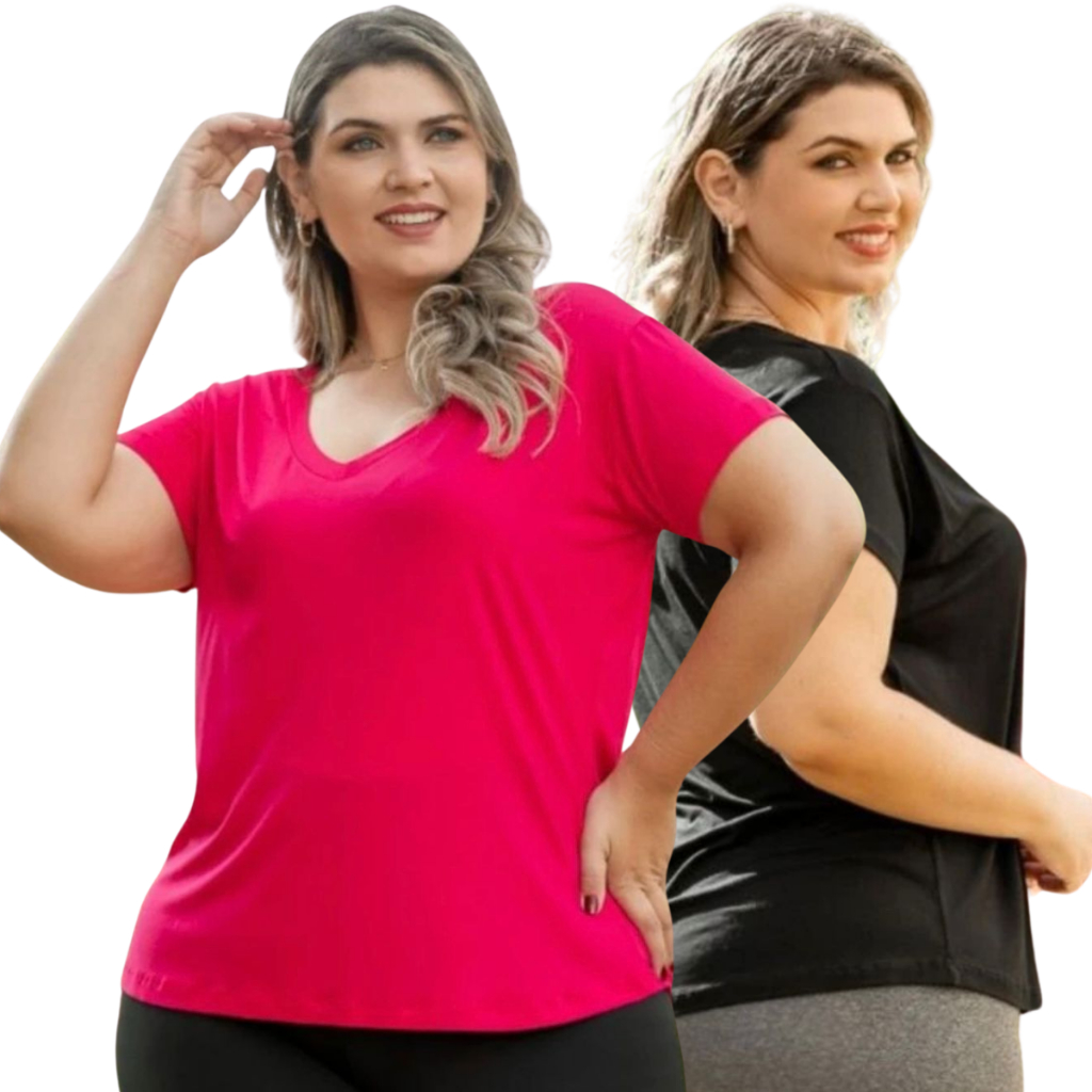 Kit 2 T Shirt Feminina Plus Size Viscolycra Decote Gola V Feminino Do G1 ao G3 Blusinha Academia Fitness Moda Básica