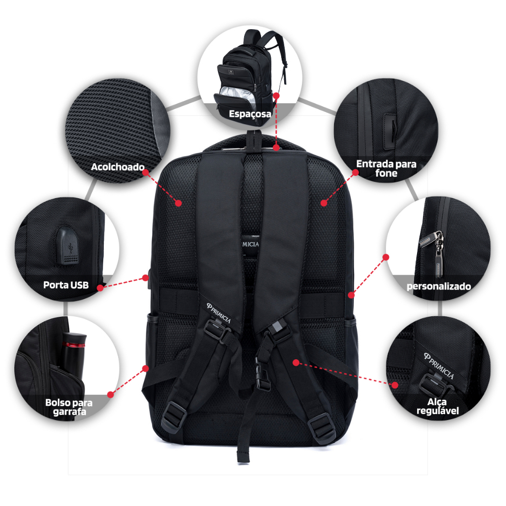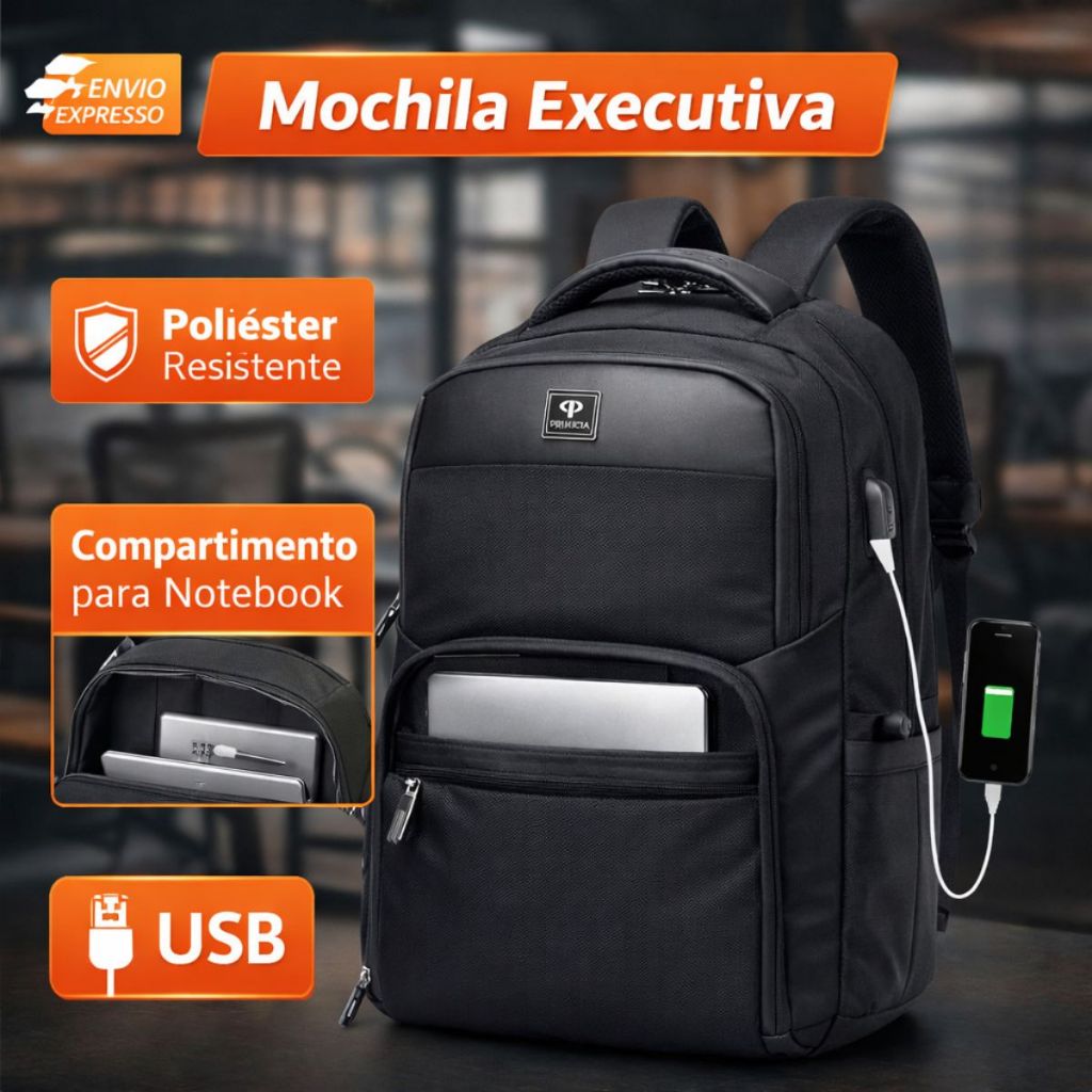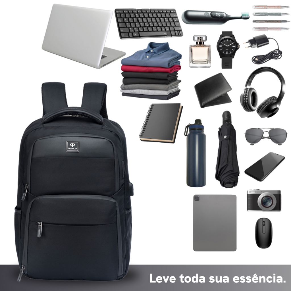 Mochila Executiva Masculina Primicia Premium Notebook USB 15.6 Resistente Acolchoada Design Moderno