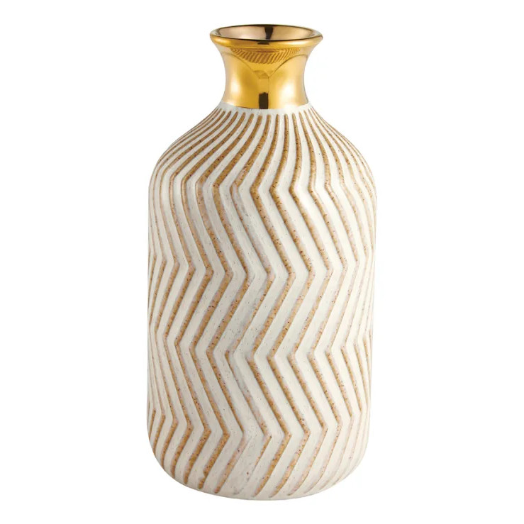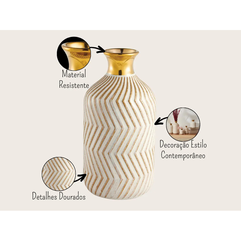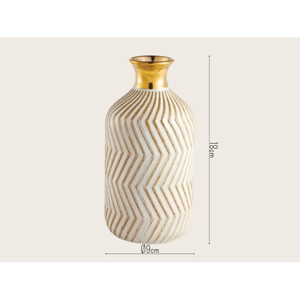 Vaso Decorativo Mesa Chão Ranhuras Dourado Em Cerâmica Luxo