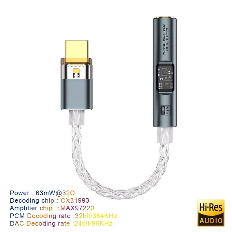 USB Tipo C Para 3.5mm Jack Adaptador Fone De Ouvido Amp Alta Fidelidade DAC-Áudio AUX Conversor Decodificador CX31993 MA