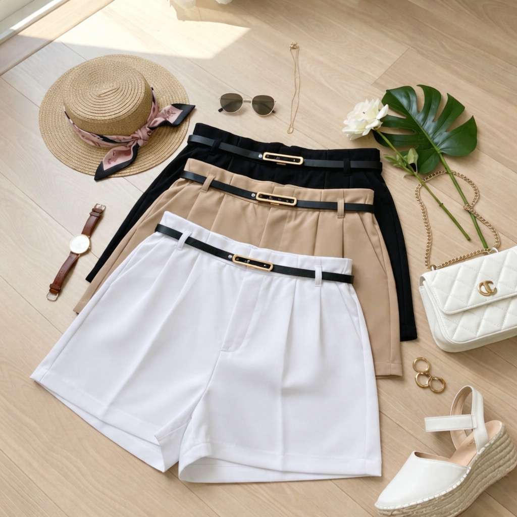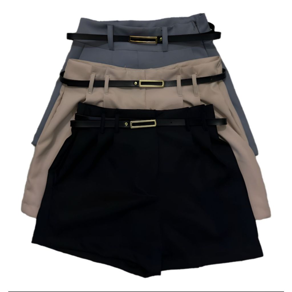 Kit 3 Shorts Alfaiataria Feminino Cintura Alta Plus Size – Preto, Bege e Cinza – Elegantes e Confortáveis