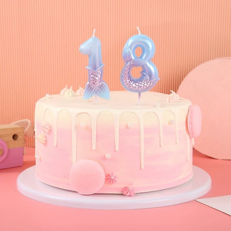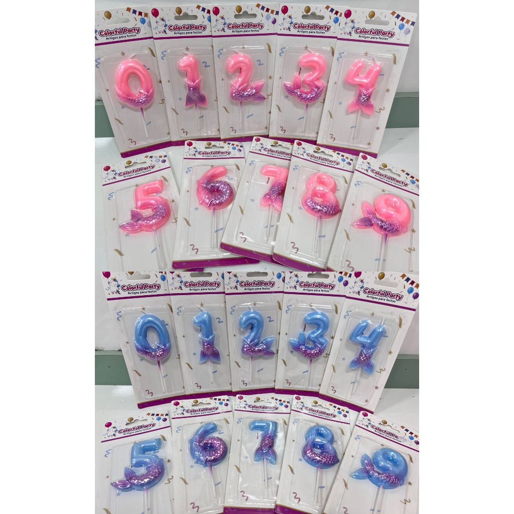 2 Vela De Aniversário Azul e Rosa Sereia Perolada Cintilante Metalizada