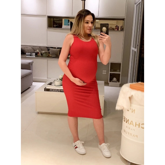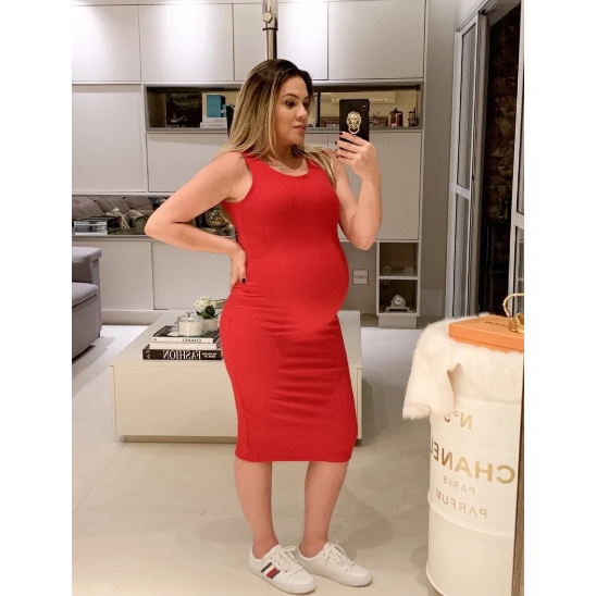 Vestido colado midi para grávidas chá de bebê lindas cores