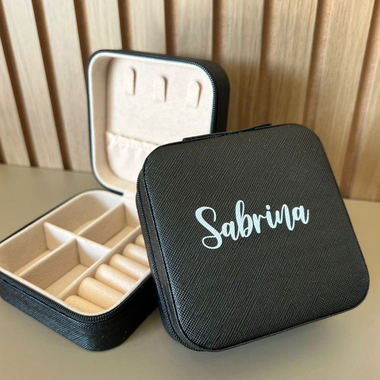 Porta Jóias Personalizado Com Nome ou Iniciais Lembrancinha Para Casamento Festa em Couro