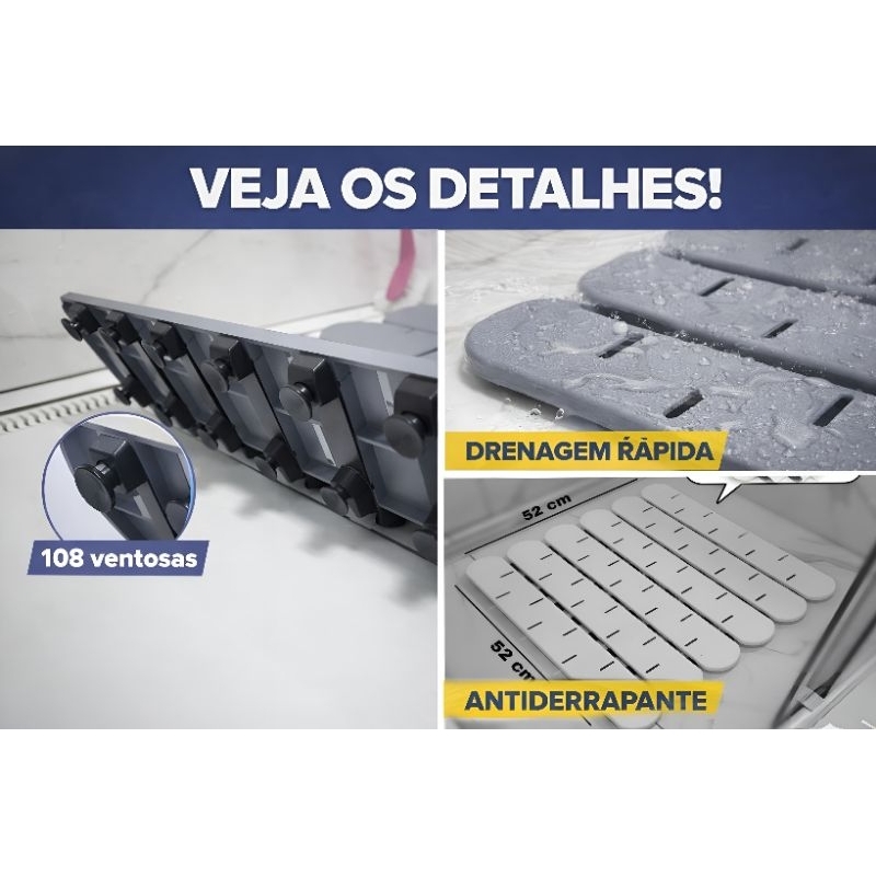 Tapete para Box de Banheiro Antiderrapante 52x52cm com 108 Ventosas – Não Tampa o Ralo