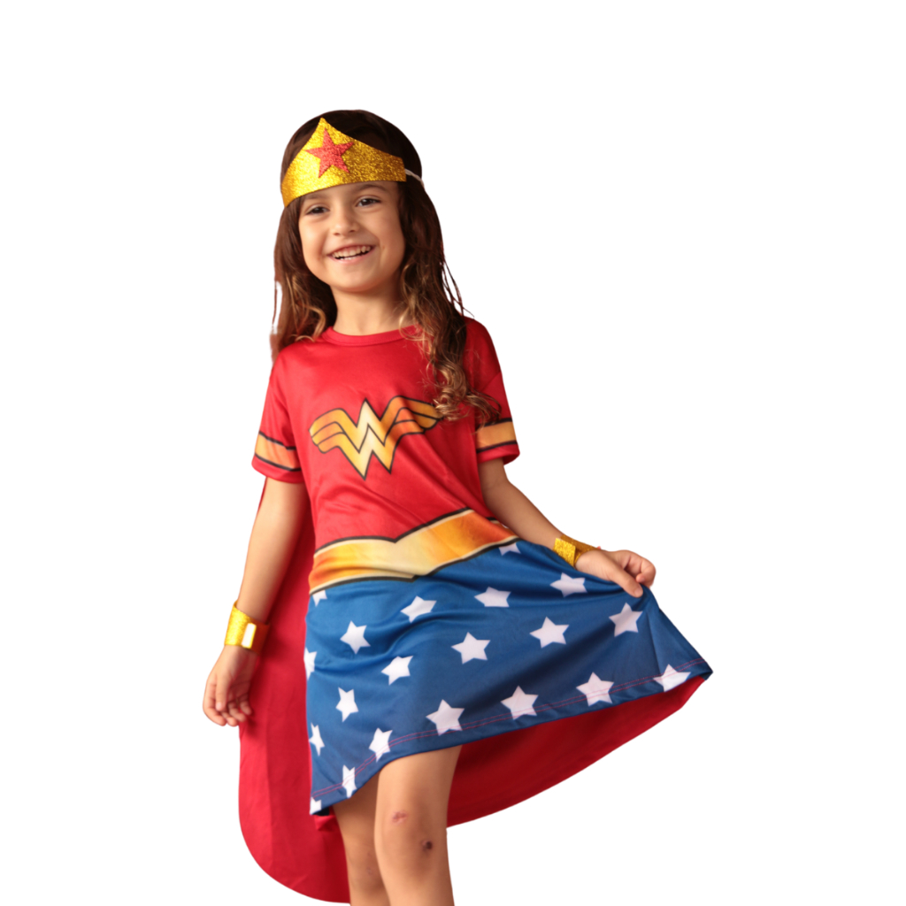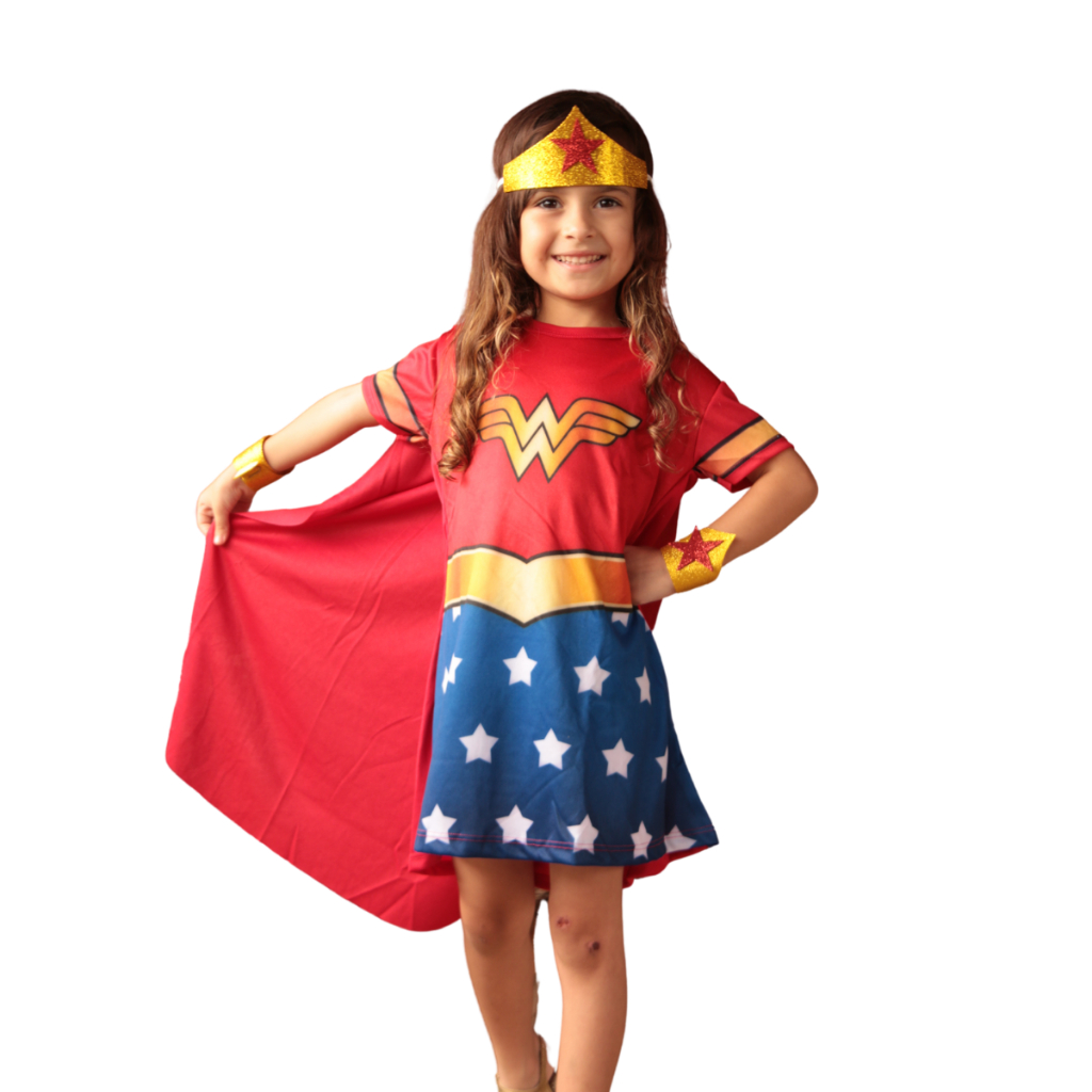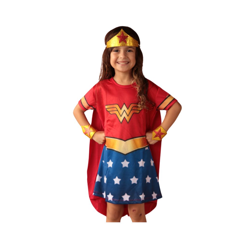 Fantasia Infantil Mulher Maravilha vestido + kit Acessórios