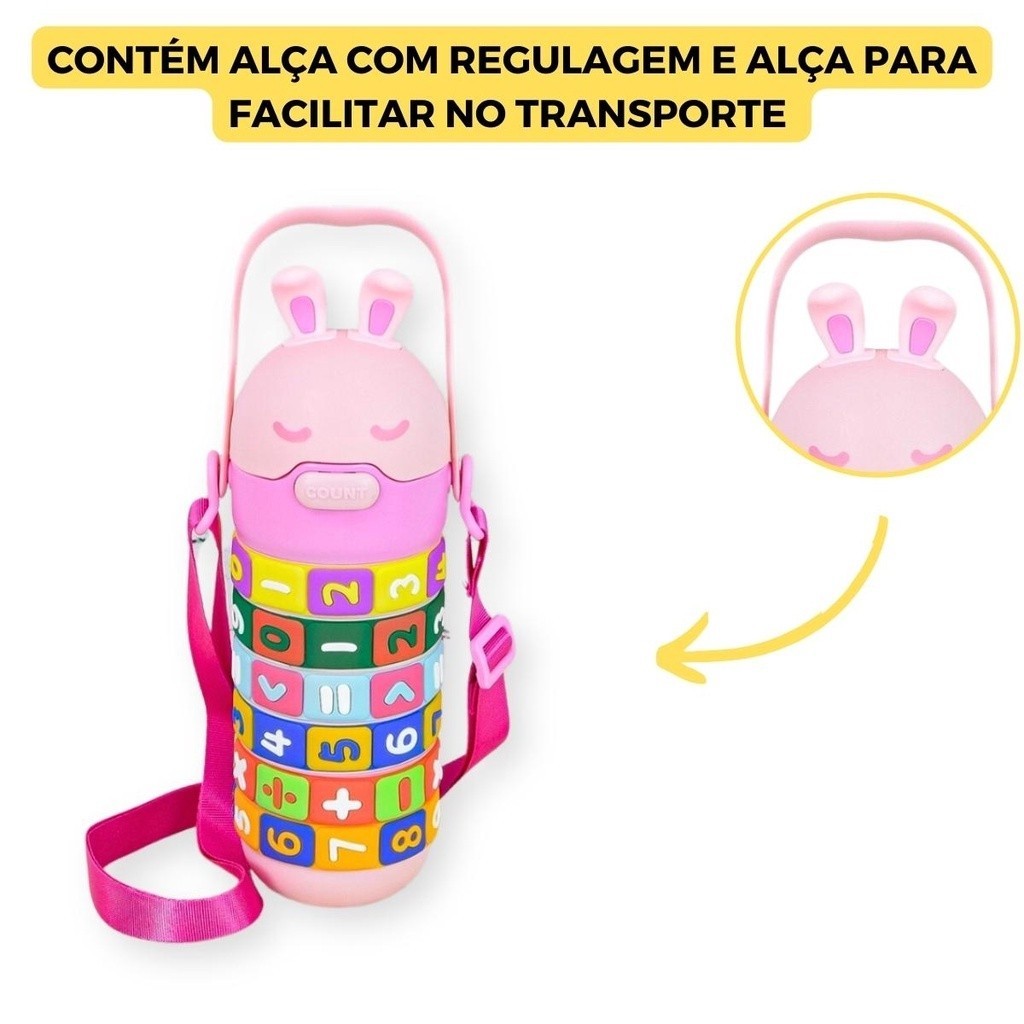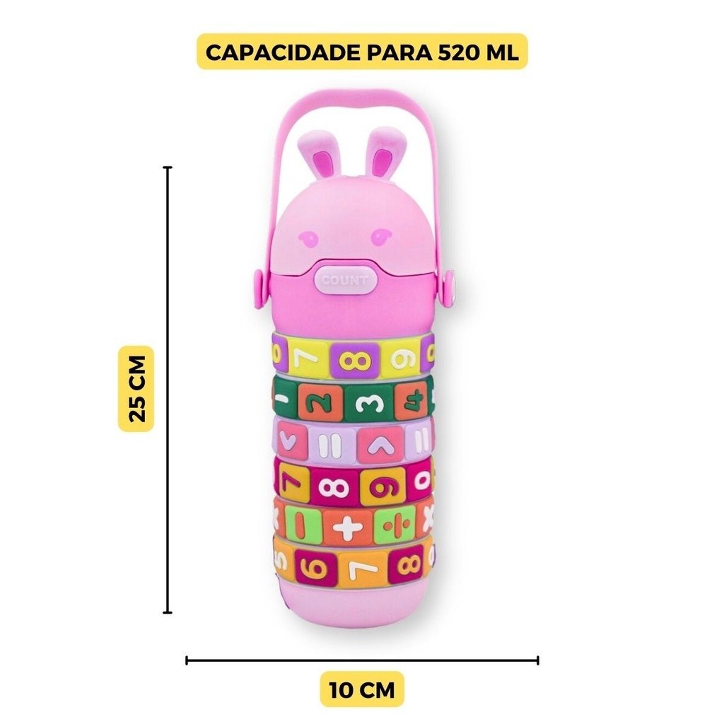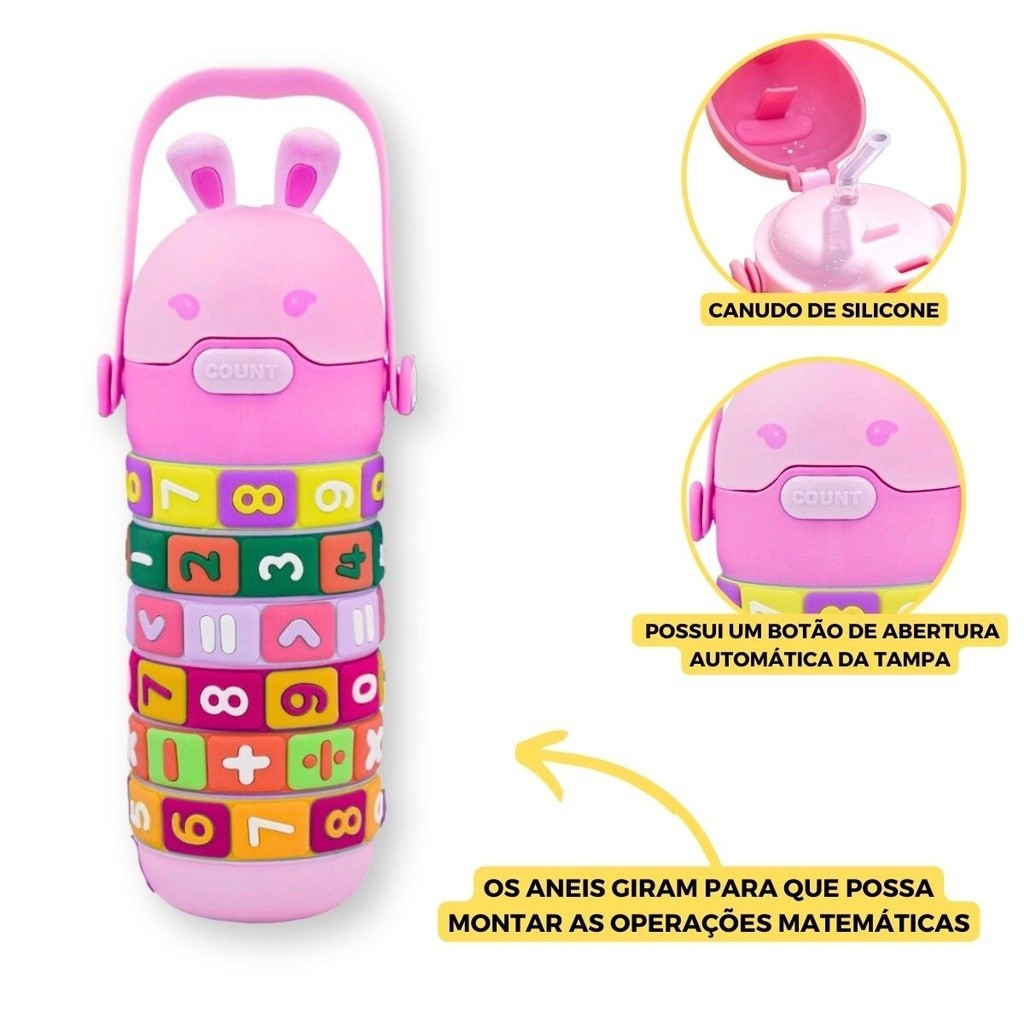 Garrafa de Água Infantil Interativa Educacional com Tabuada Números e Contas 360° 520ml