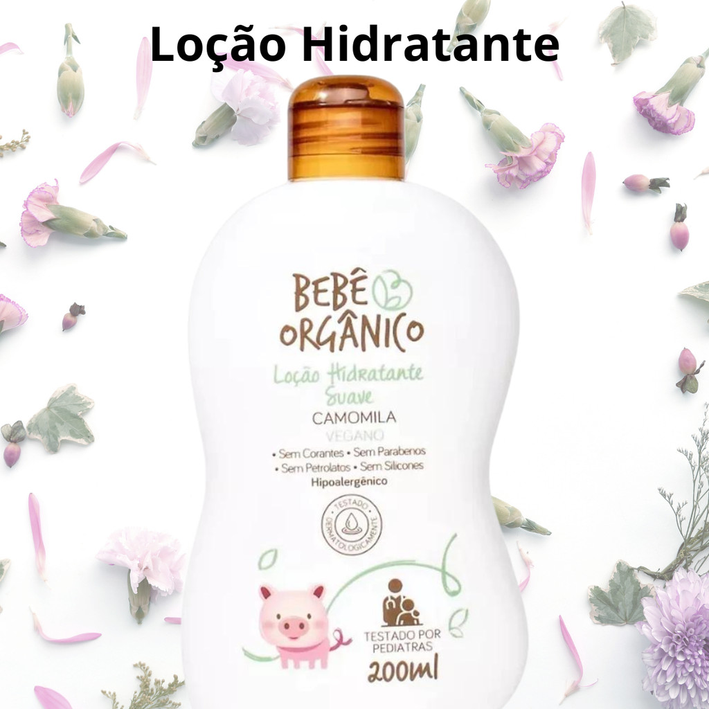 Loção Hidratante para Pele do Bebê - Recém Nascido - Orgânico Camomila - Limpa Acalma Nutre - 200 ml