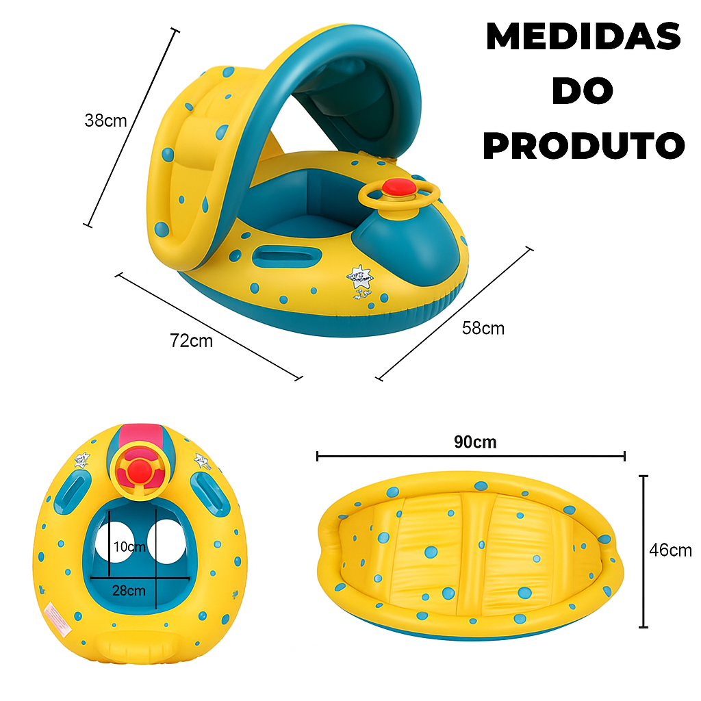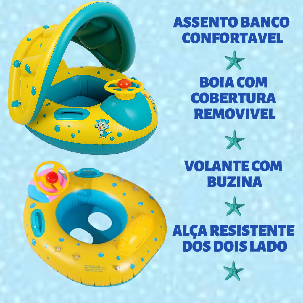 Boia infantil Boia com Cobertura para bebe Barquinho inflavel Boia Carrinho Boia com buzina
