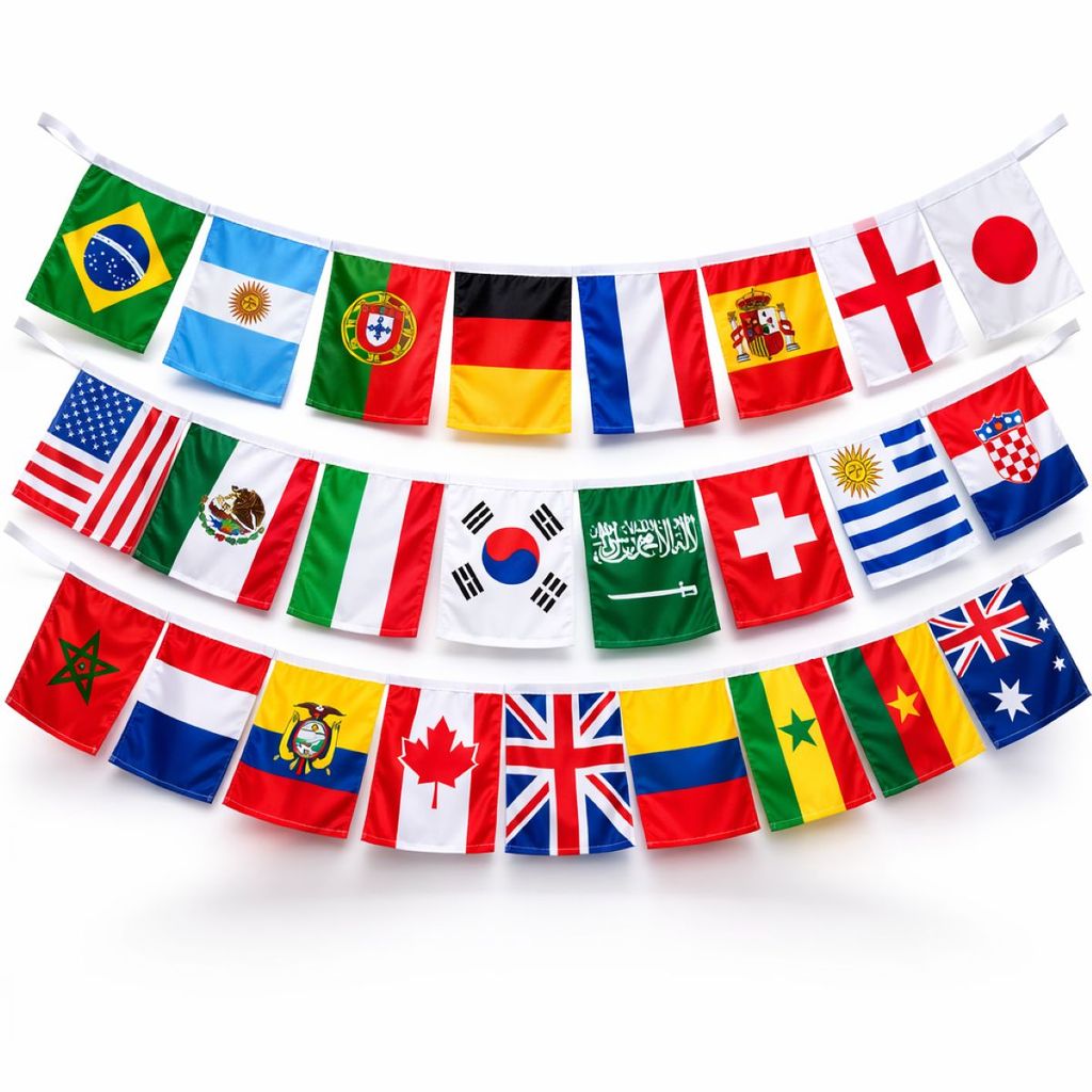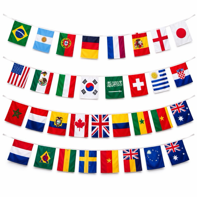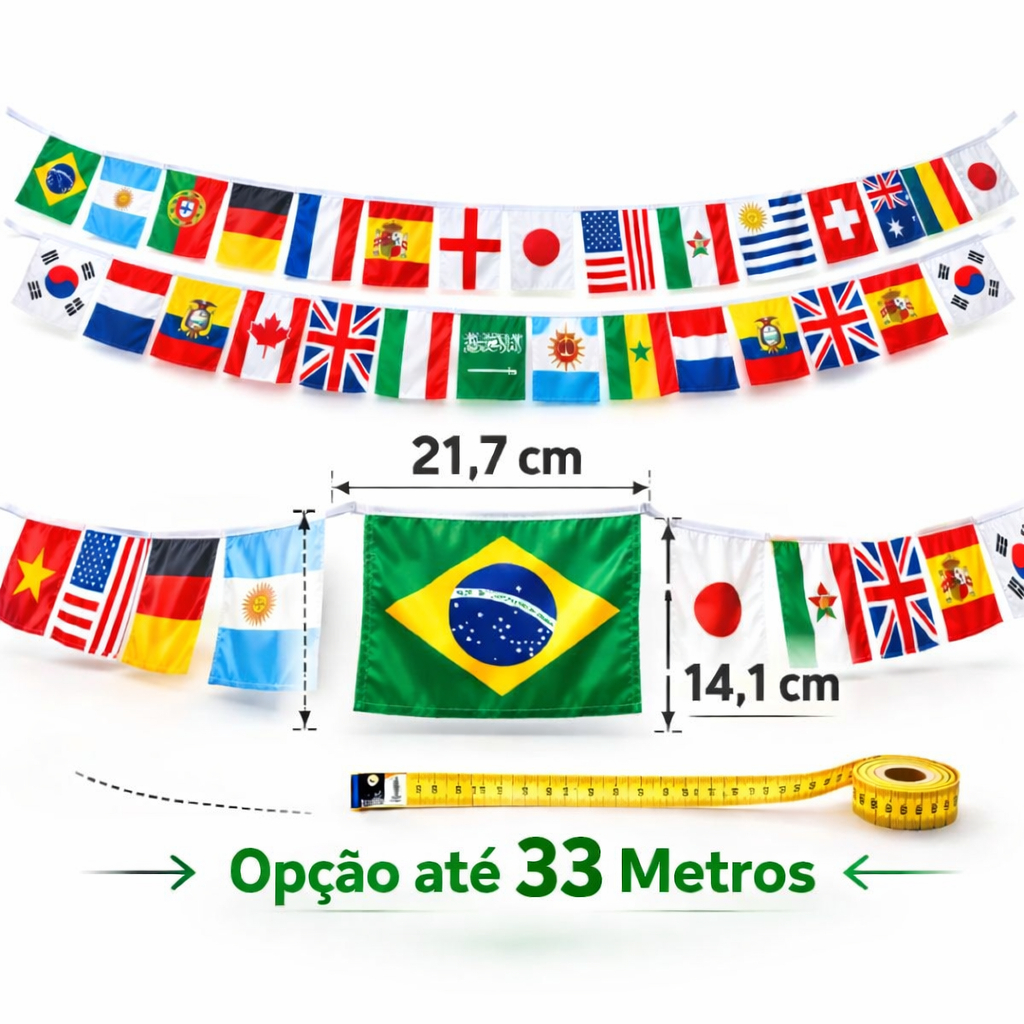 Bandeirinha Vários Países Copa do Mundo 2026 Varal de Bandeiras - Bandeirinhas com Países Variados - Opção 33 Metros