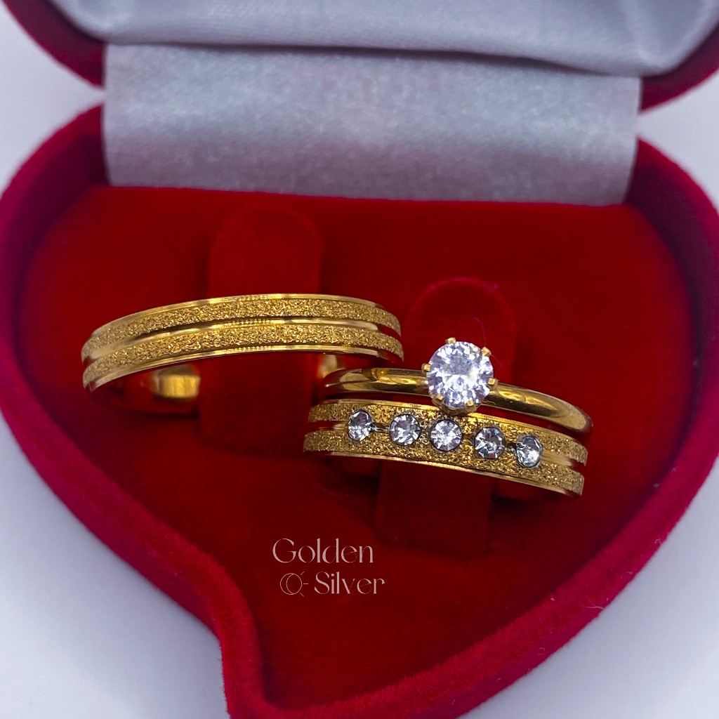 Par de Aliança de Namoro Casamento Dourada Diamantada Canal com linha fina 4mm