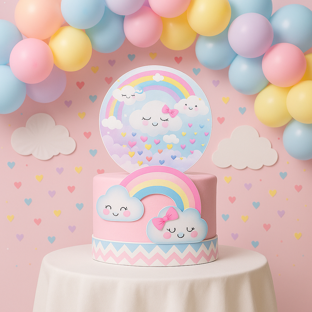Bolo Fake Mini Chuva De Amor Benção Mod2 Base 15x10 C Topo