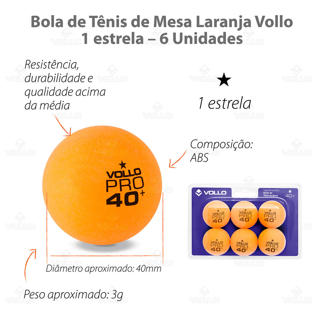 Kit 6 Bolinhas Ping Pong Tenis de Mesa 1 Estrela Vollo Pro40 Competição e Treinamento Avançado