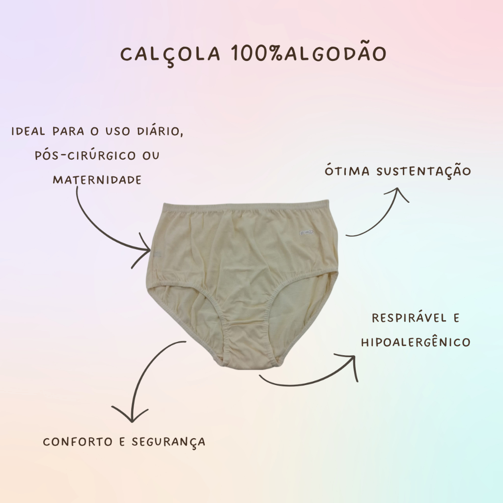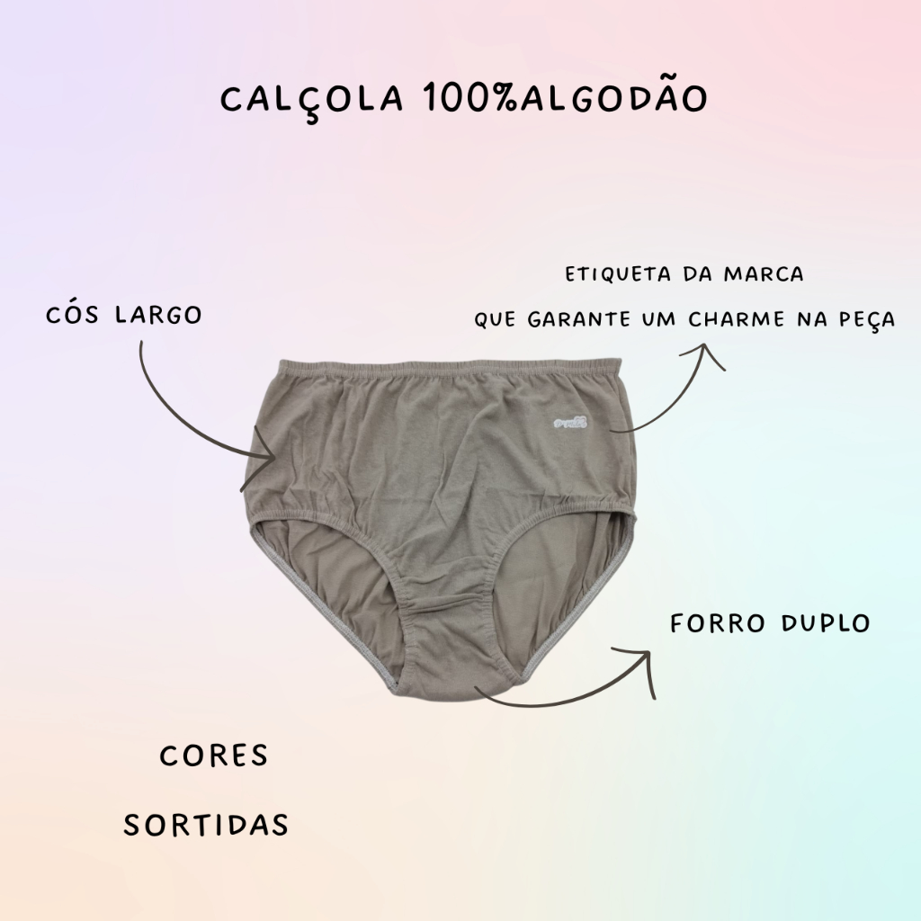 Kit 6 Calçolas 100% Algodão Femininas Calcinha Para Senhora Cintura Alta Conforto Cores Variadas Antialérgica Macia
