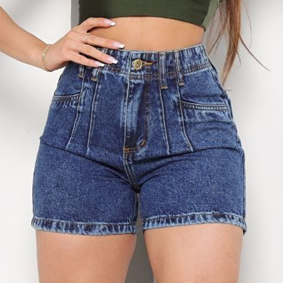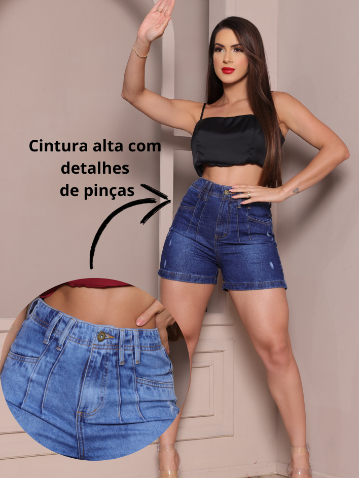 Bermuda Meia Coxa Feminina Com 4 Pinças Modeladora Cintura Alta Short Jeans 100% Algodão
