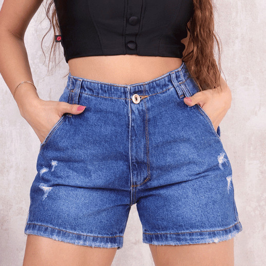 Kit Short Unidade Bermuda Boyfriend Meia Coxa Cintura Alta Feminino Jeans Short 100% Algodão Confortavel