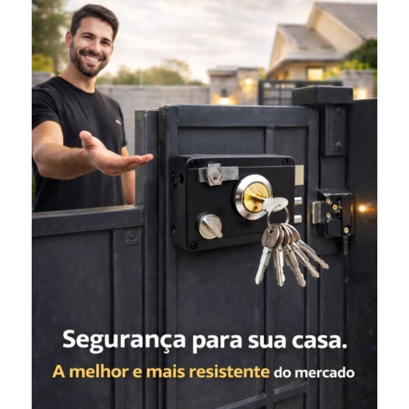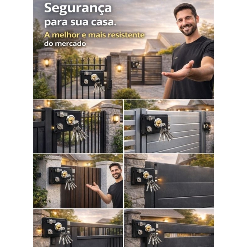 Fechadura para portão residencial manual 6 chaves tetra sobrepor