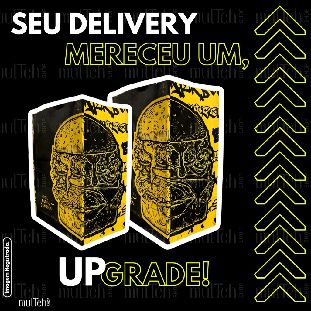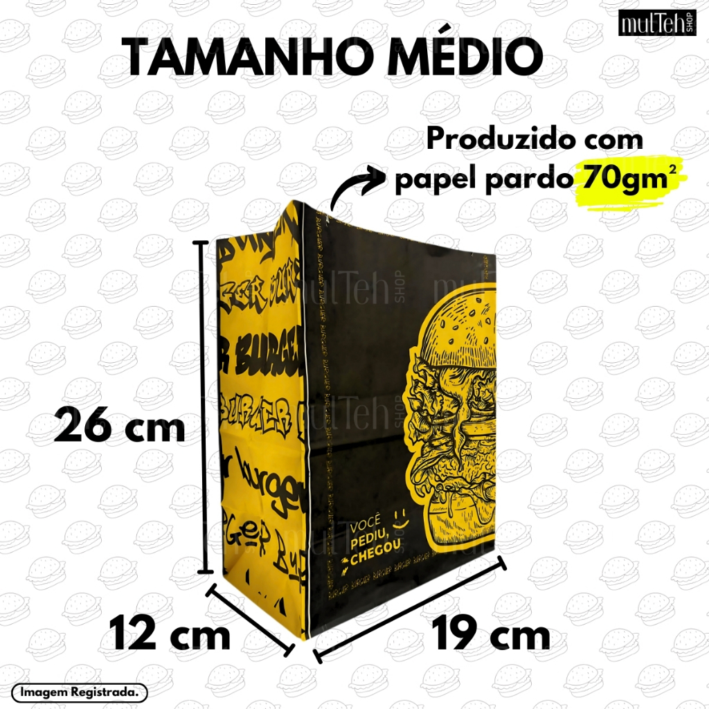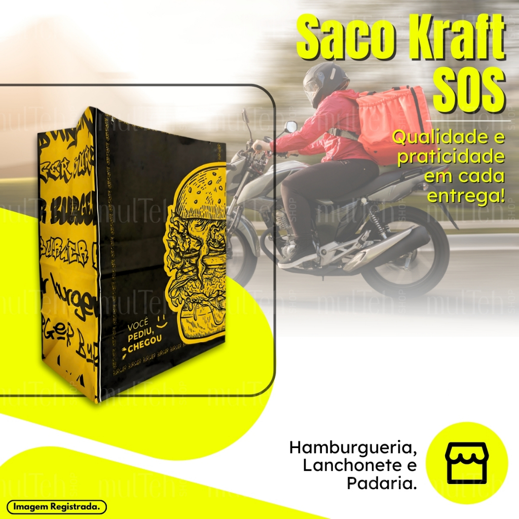 500 Un Saco Para Delivery Kraft SOS Médio 26x19x12 Preto Amarelo