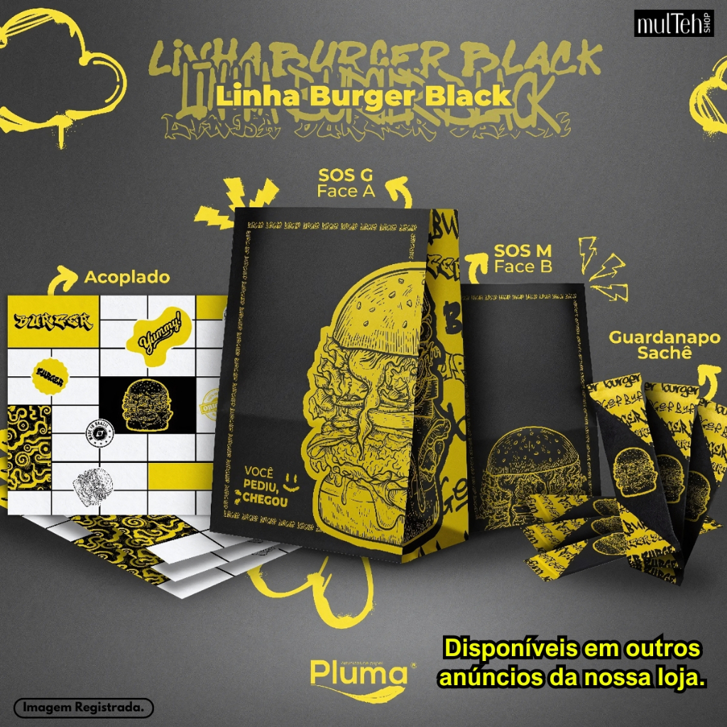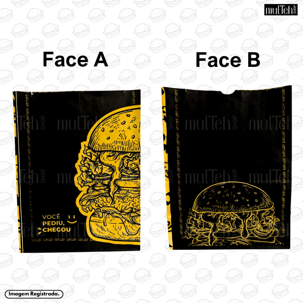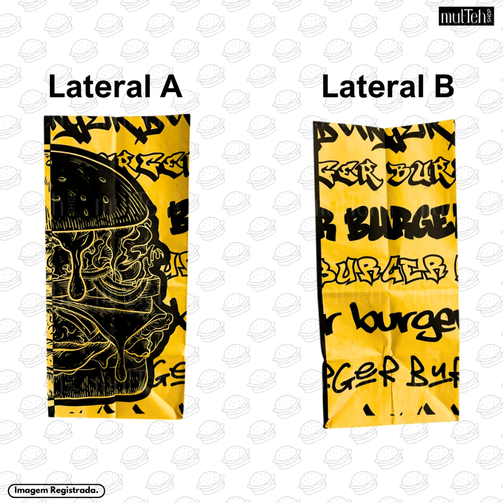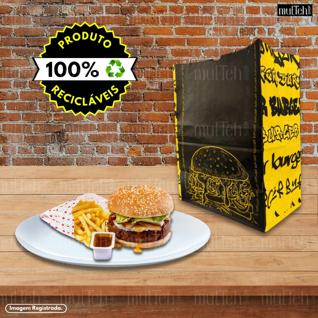 500 Un Saco Para Delivery Kraft SOS Médio 26x19x12 Preto Amarelo