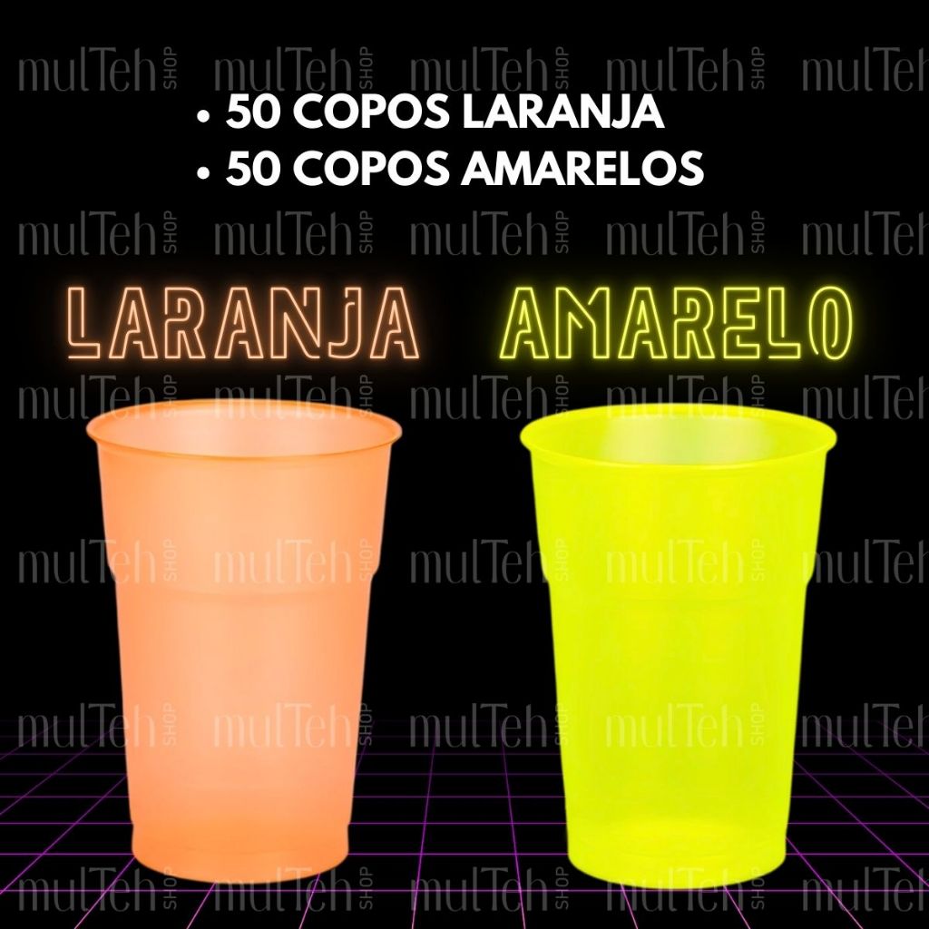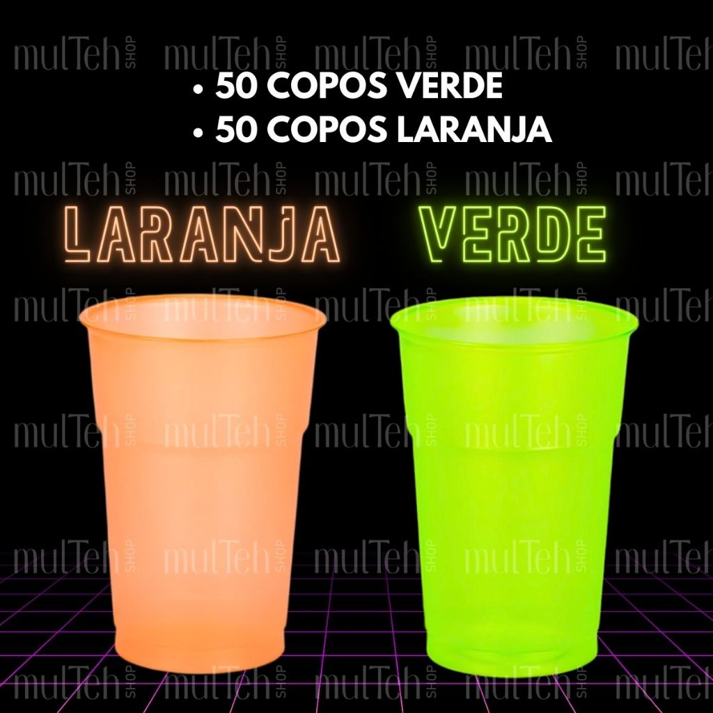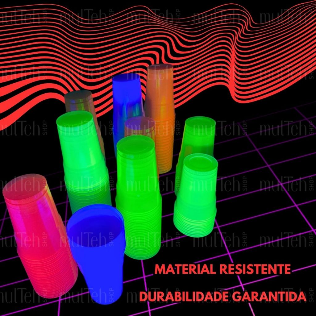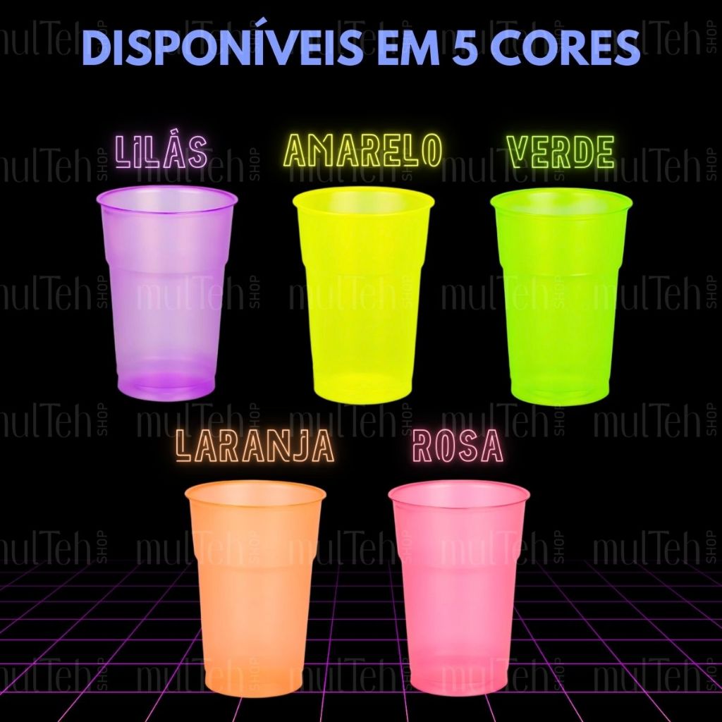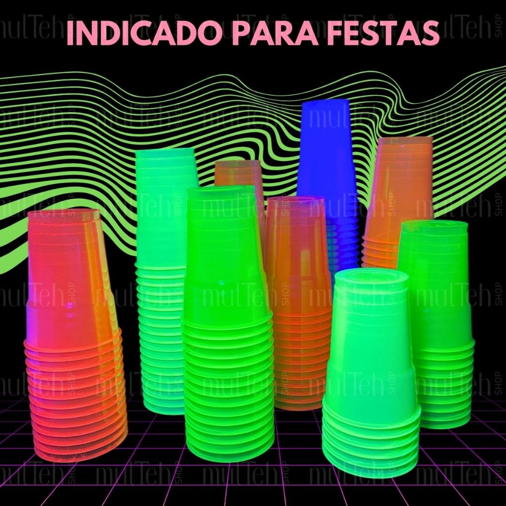 100 Copos Descartável Neon Festa Balada 300ml Sortido Brilho