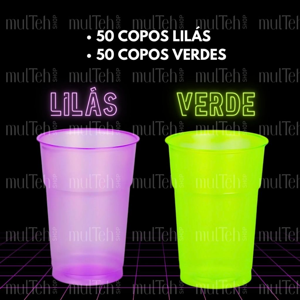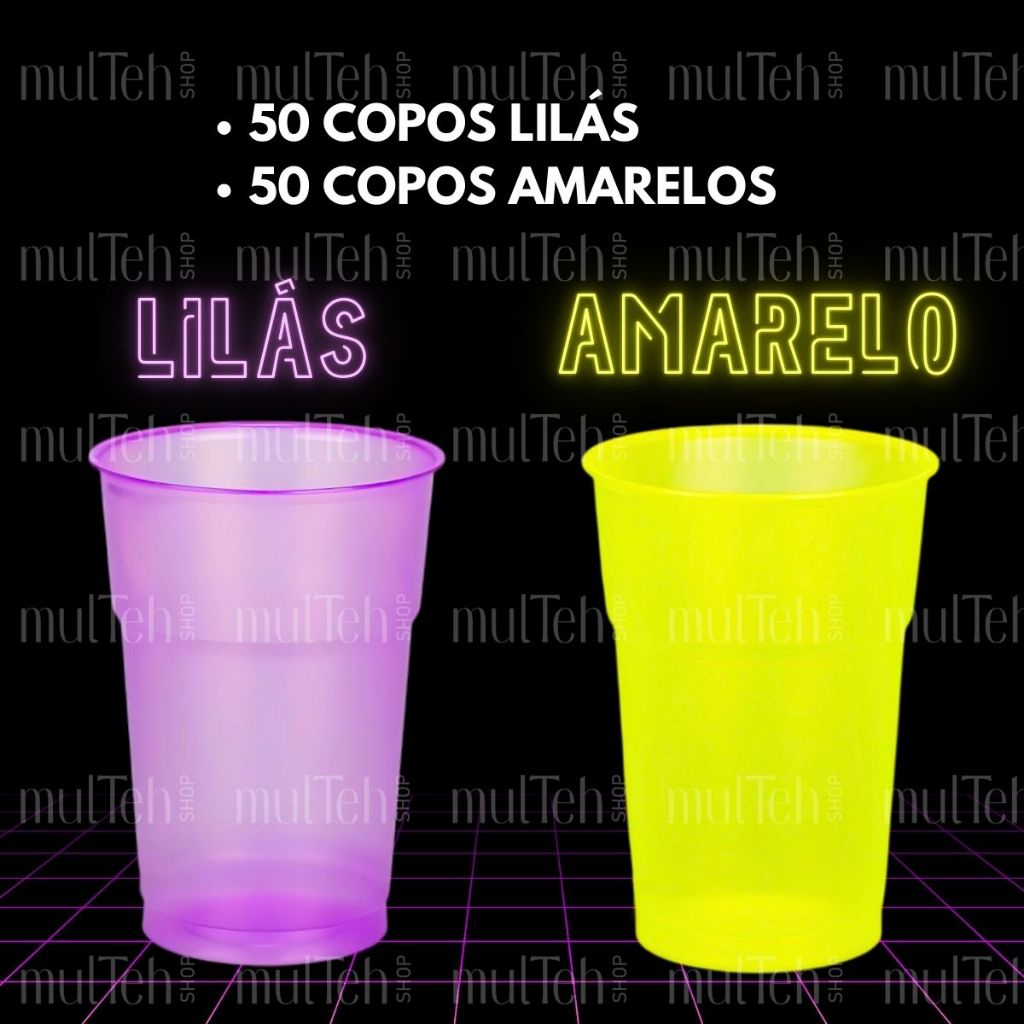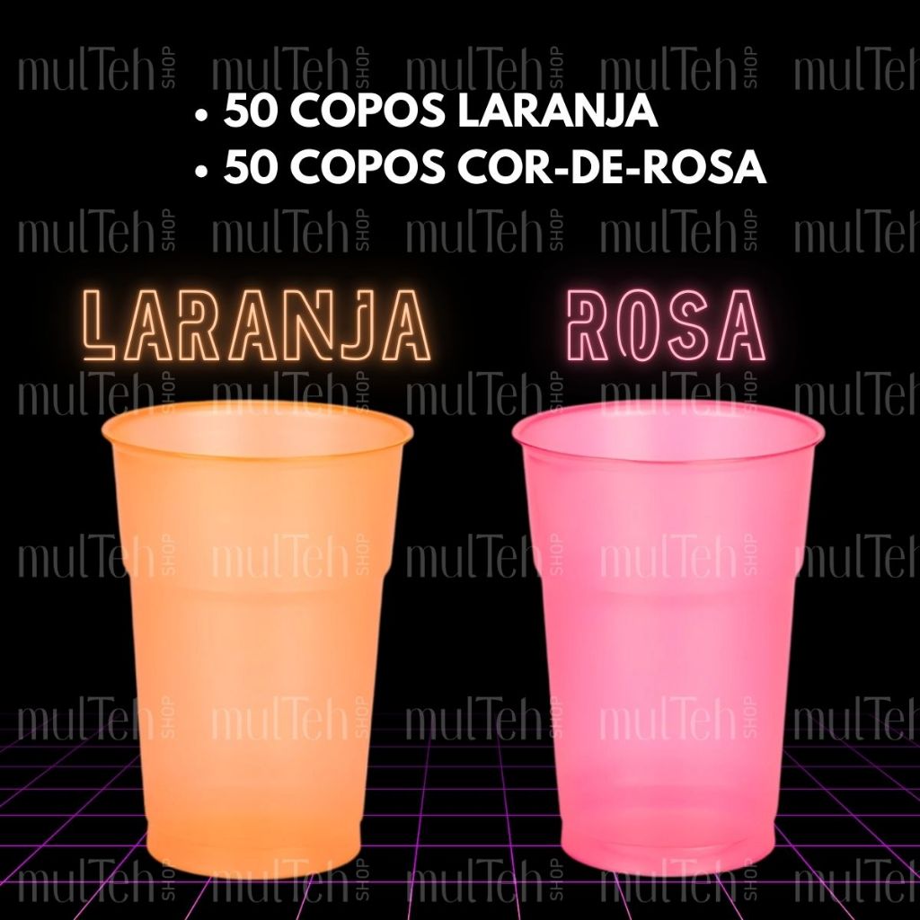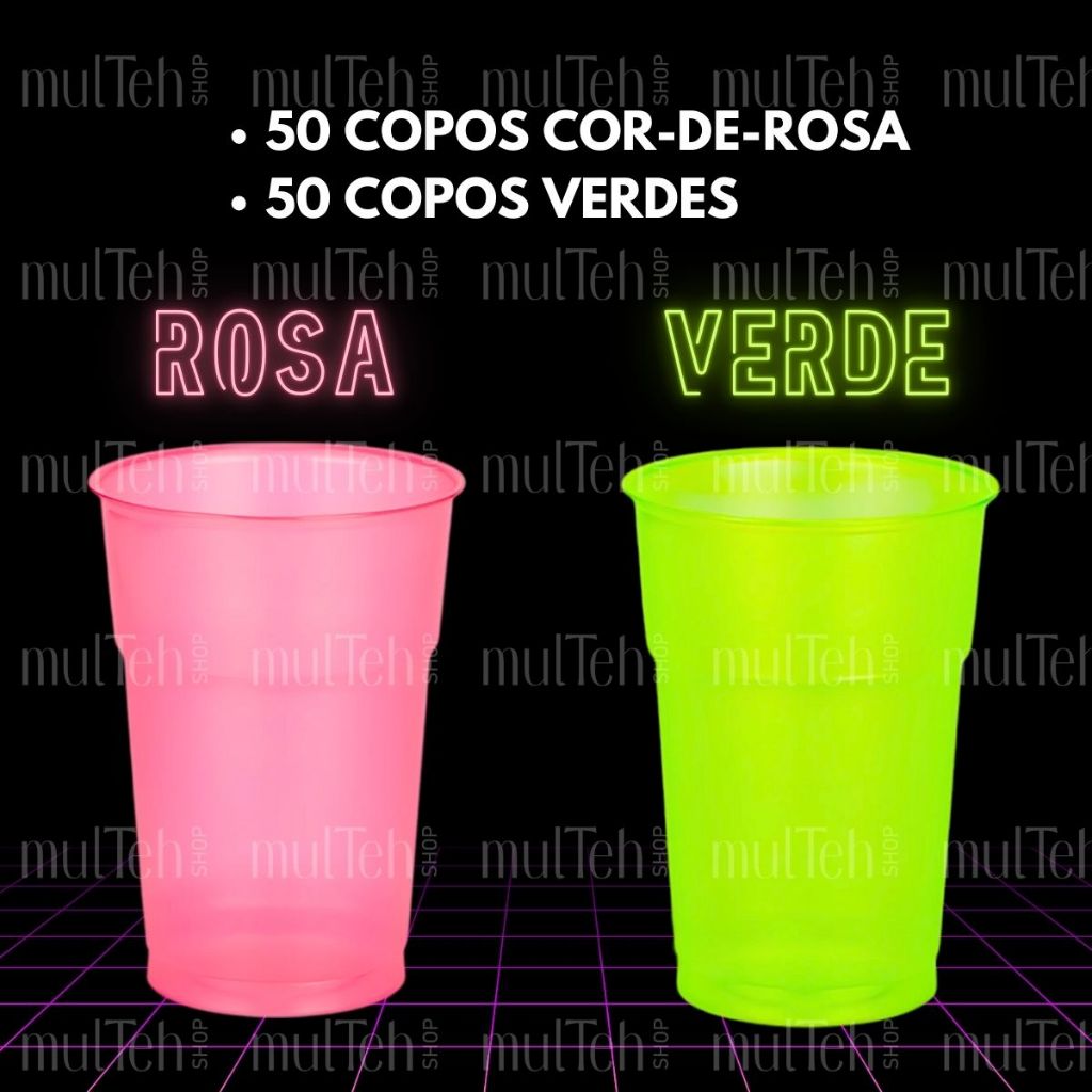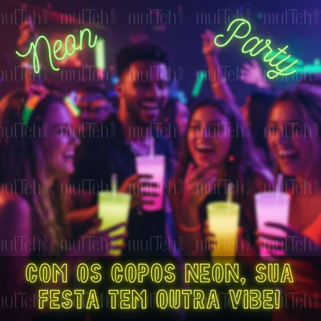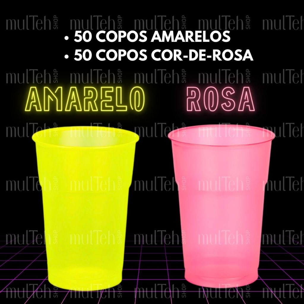 100 Copos Descartável Neon Festa Balada 300ml Sortido Brilho