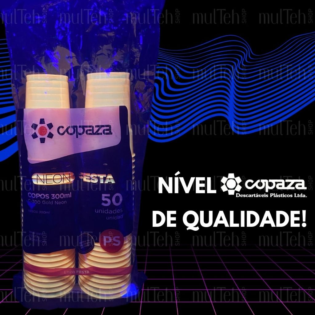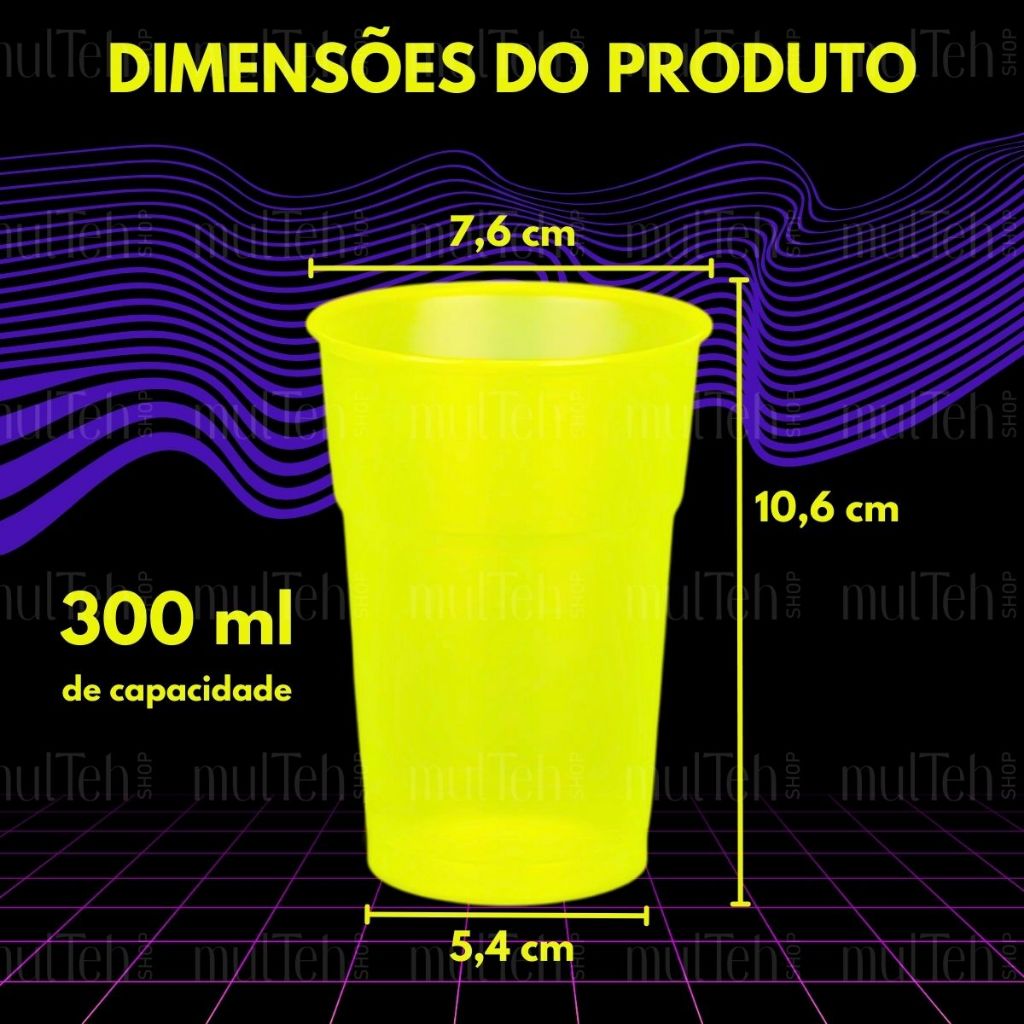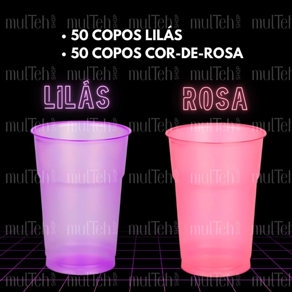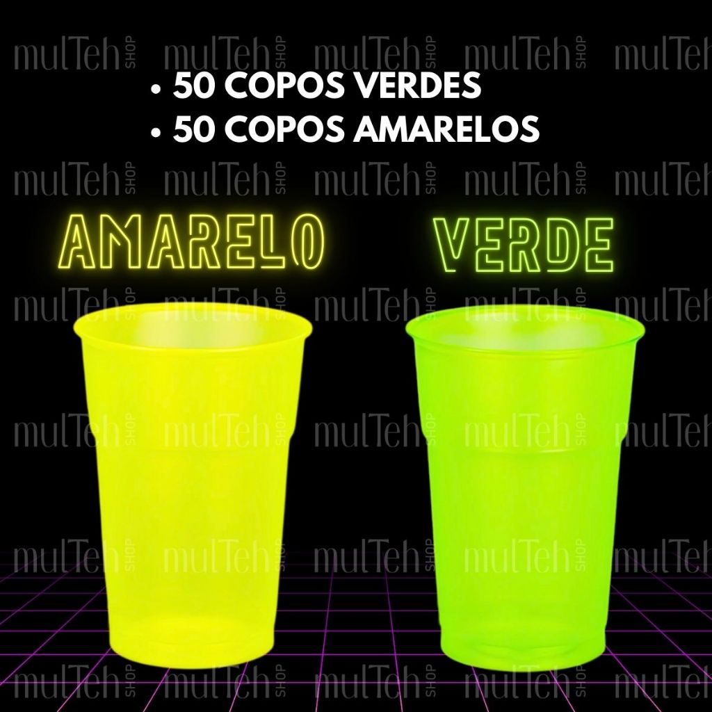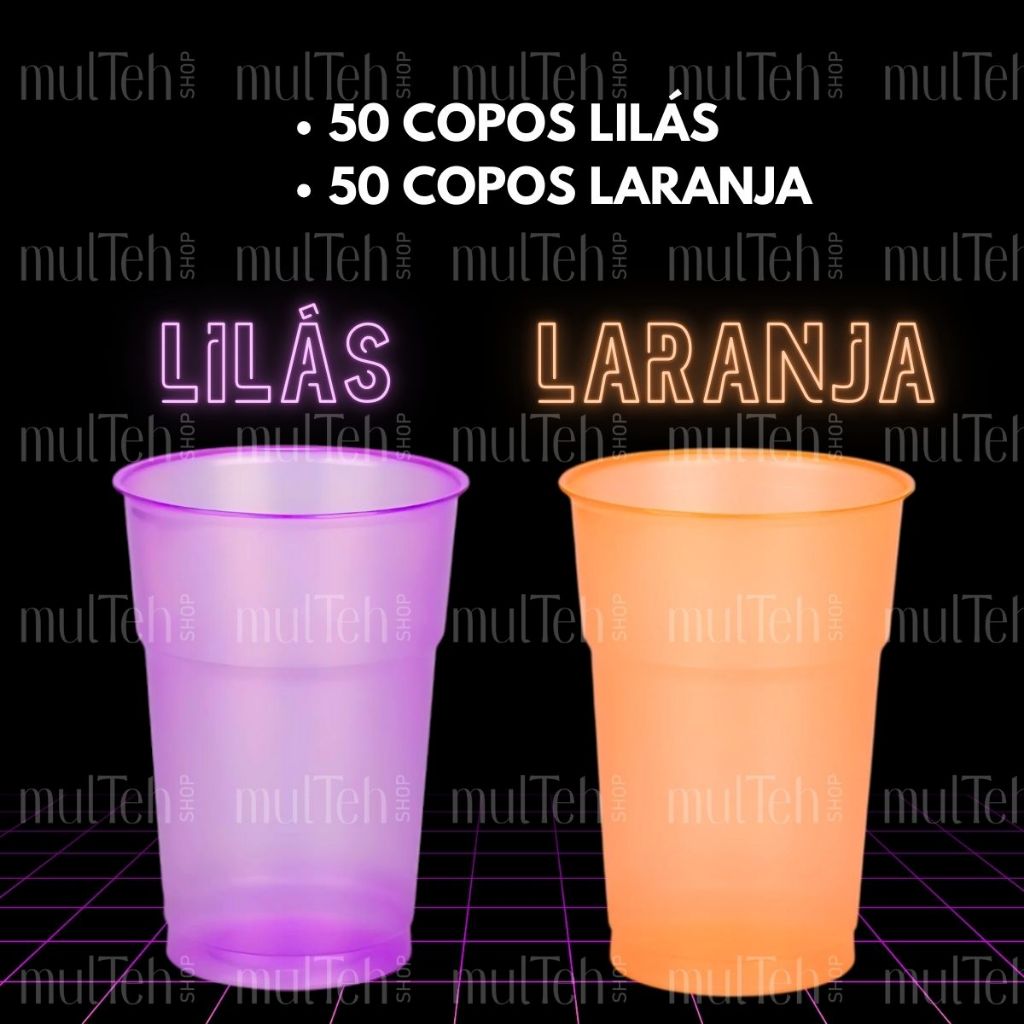 100 Copos Descartável Neon Festa Balada 300ml Sortido Brilho
