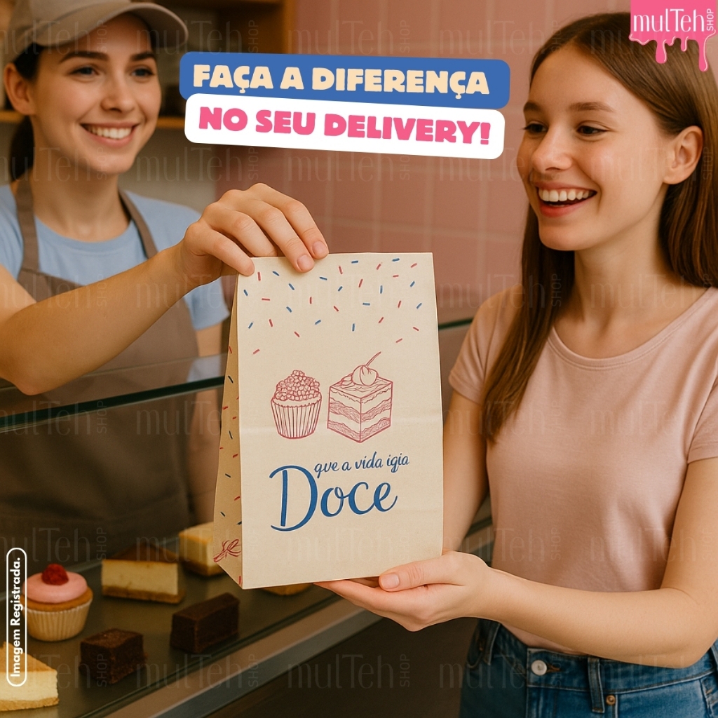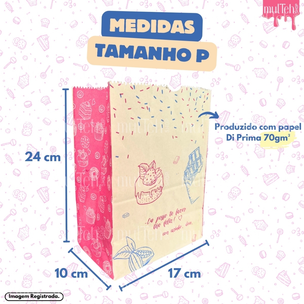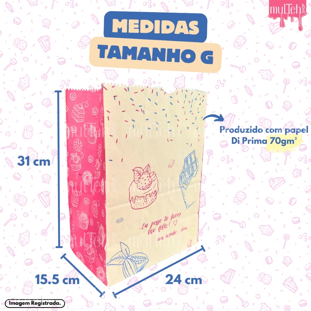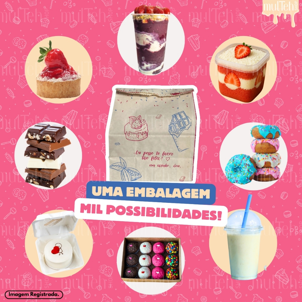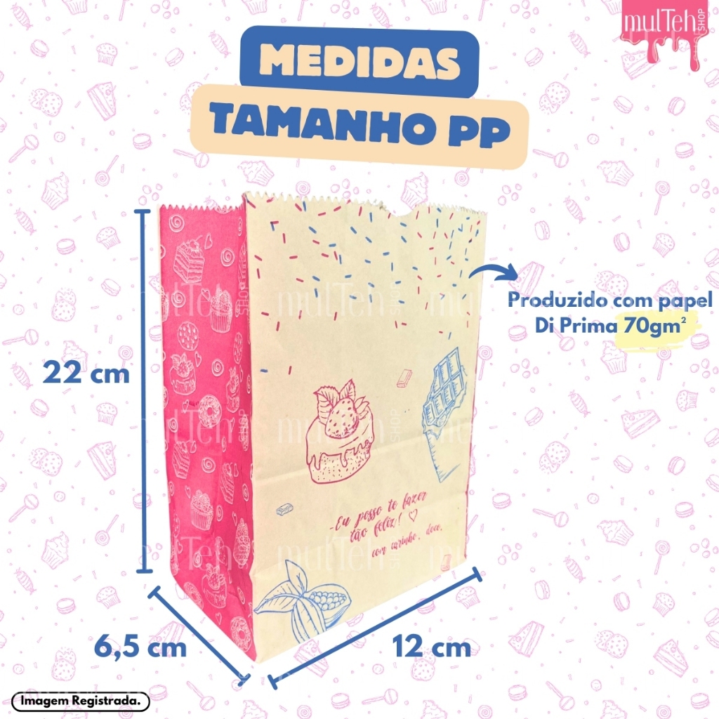 100 Saco Kraft SOS PP P G Para Delivery Doce Doceria Docinhos Cookies Açaí Pequeno Grande