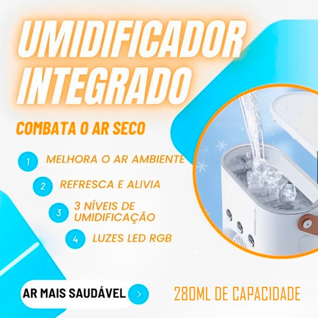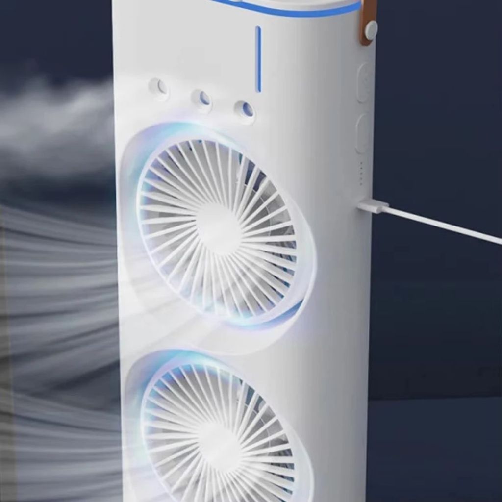 Ventilador Umidificador Duplo Torre 3 Velocidades Portátil Climatizador Led Ar Condicionado USB