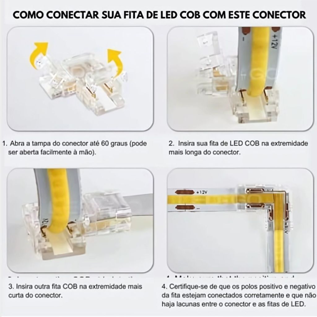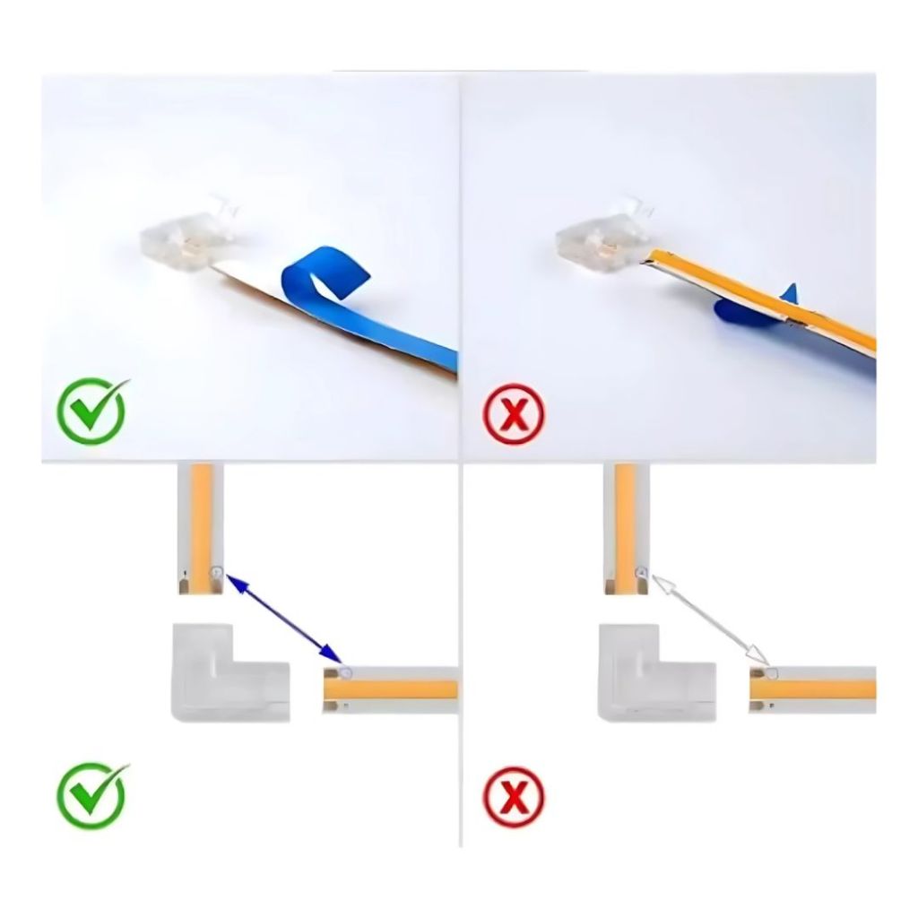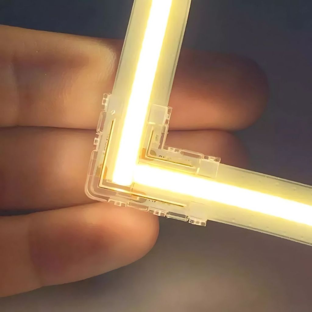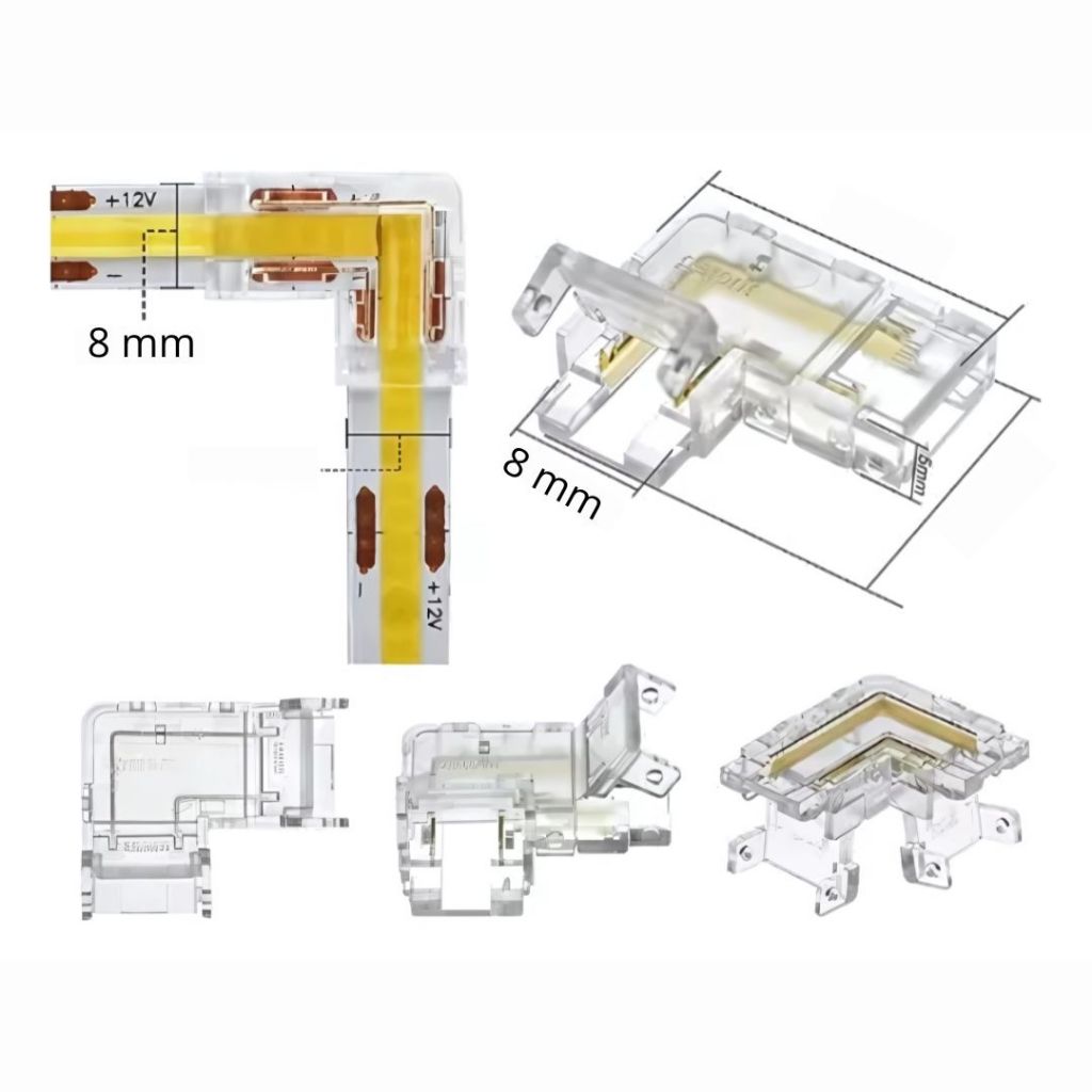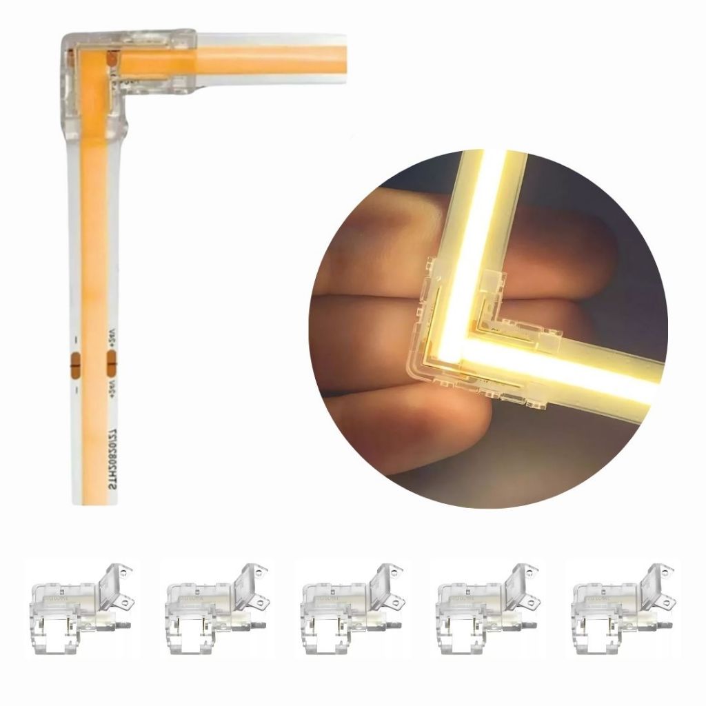 KIT 5/10 Emenda Para Fita Cob LED Curva 90° Conector em L Sem Solda Para Fitas 8mm
