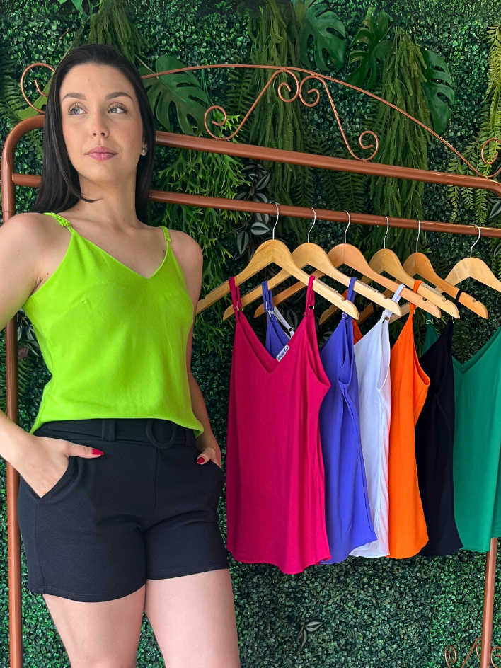 Regata Alca Fina Regulável 100% Viscose Blusa Feminina Moda Basica Casual