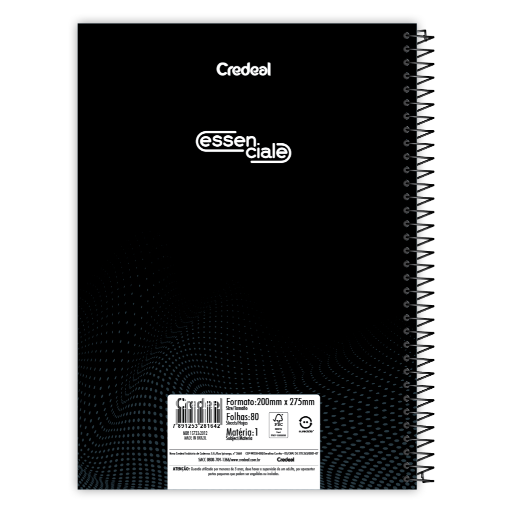 Caderno Universitário Essenciale Preto 1/10/12/16/20 matérias Credeal