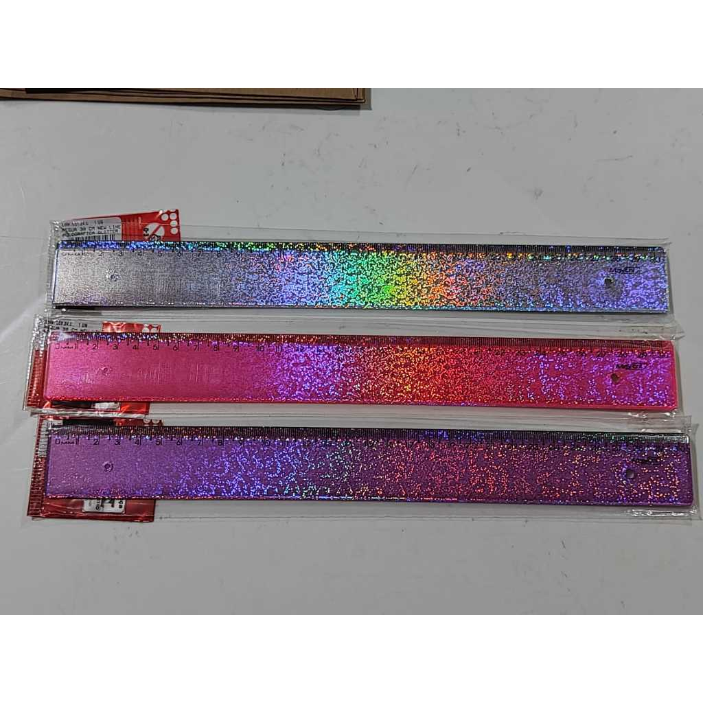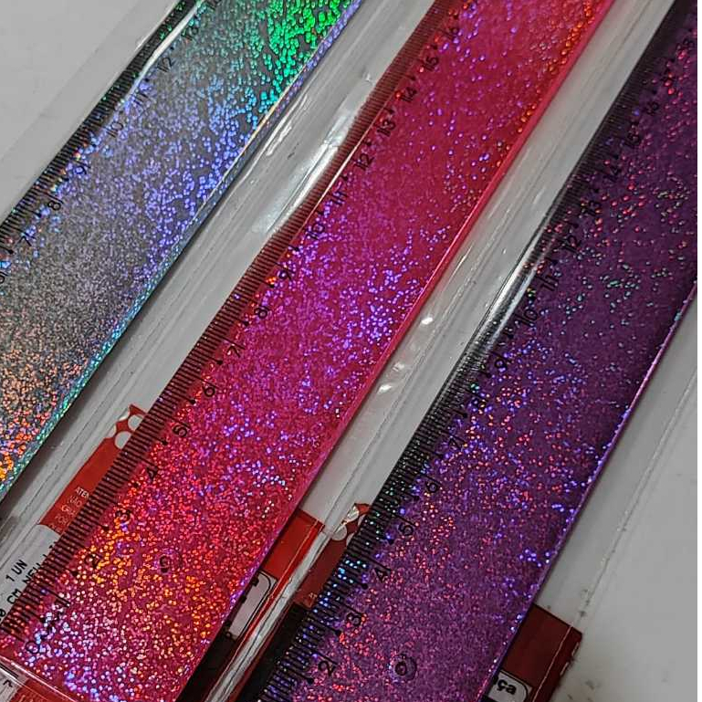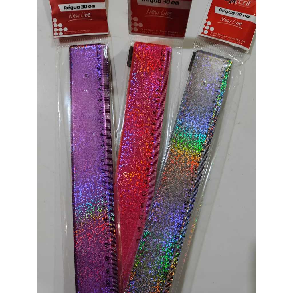 Régua Escolar De 30cm Gliter Rosa/ Lilás / Prata Maxcril
