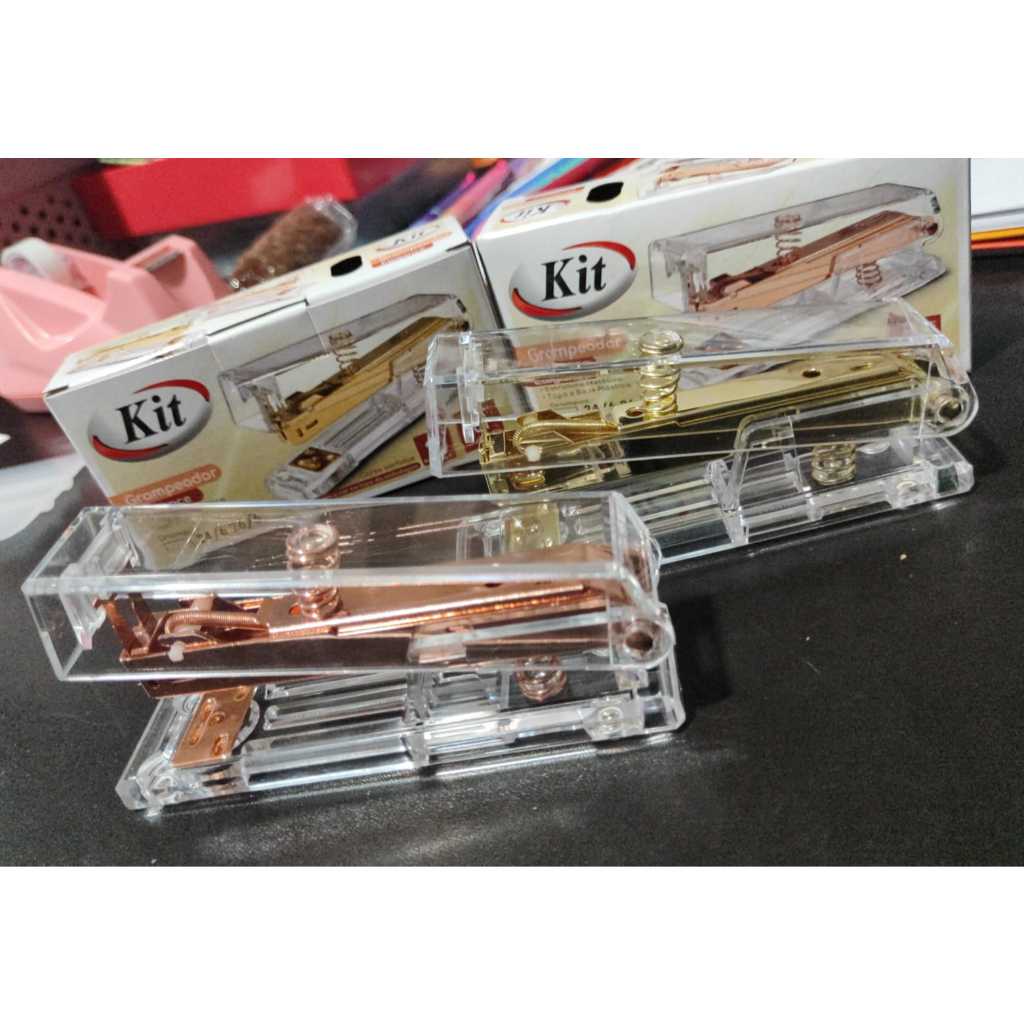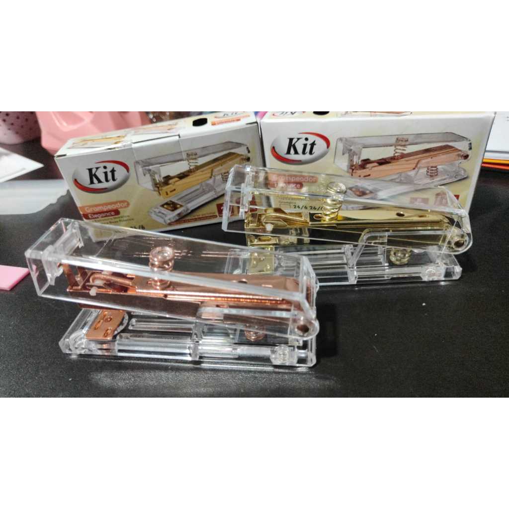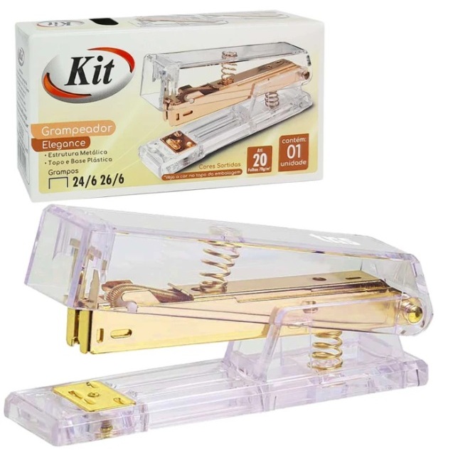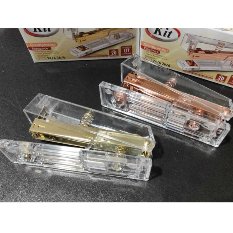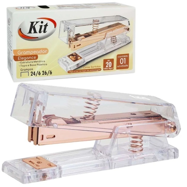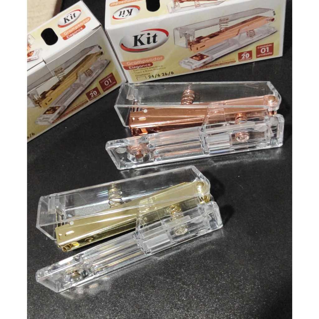 Grampeador para 20 folhas 26/6 Rose Gold / Dourado - Kit