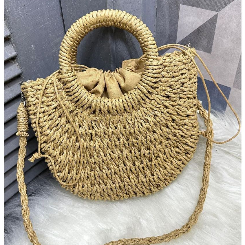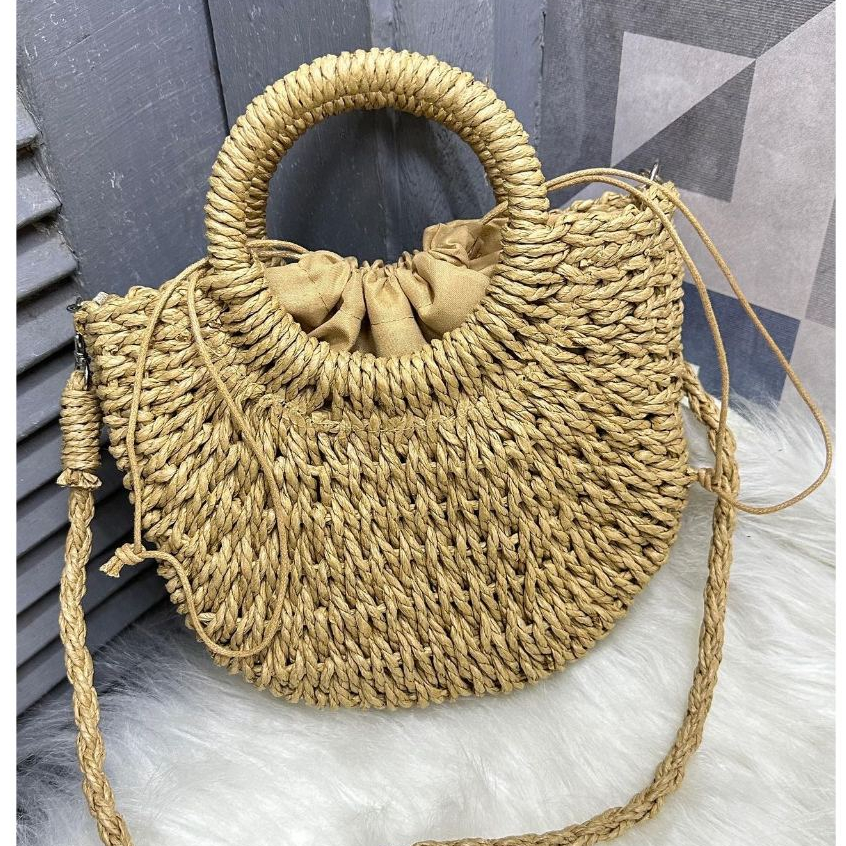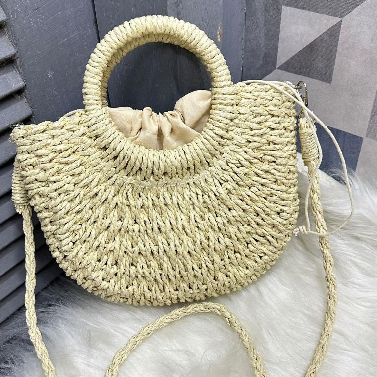 Bolsa Transversal Mão Palha Artesanal Praia/Casual(P837)