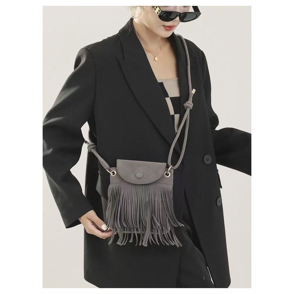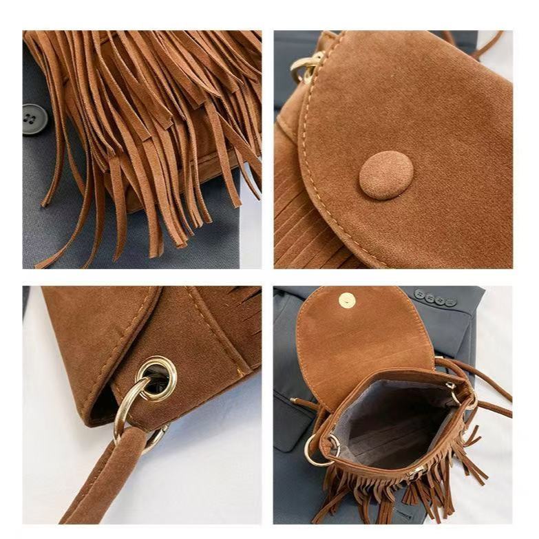 Bolsa Feminina Franja de Ombro e Transversal Boho Chic Camurça Lançamento(9366)