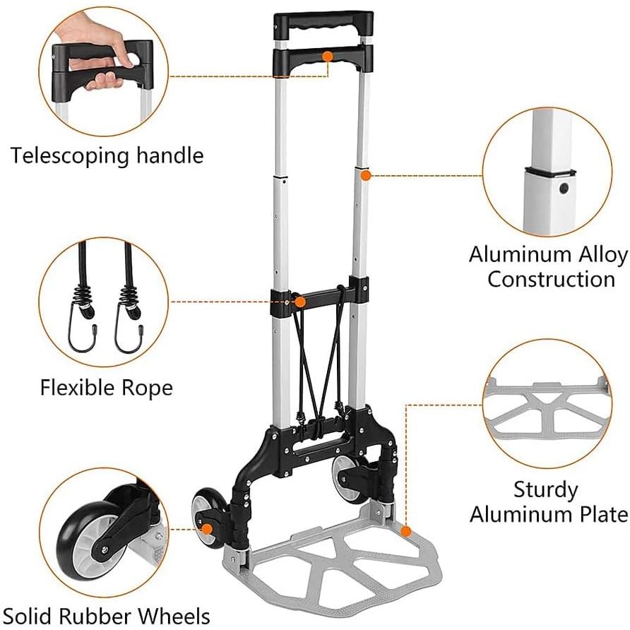 Carrinho De Mão para Carga Alumínio Dobrável Até 80kg + Corda Chalesco