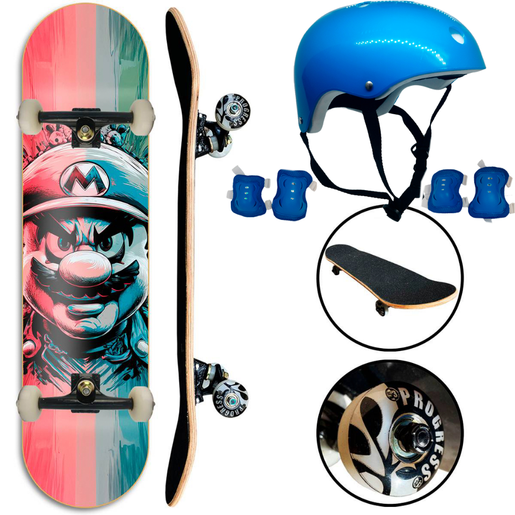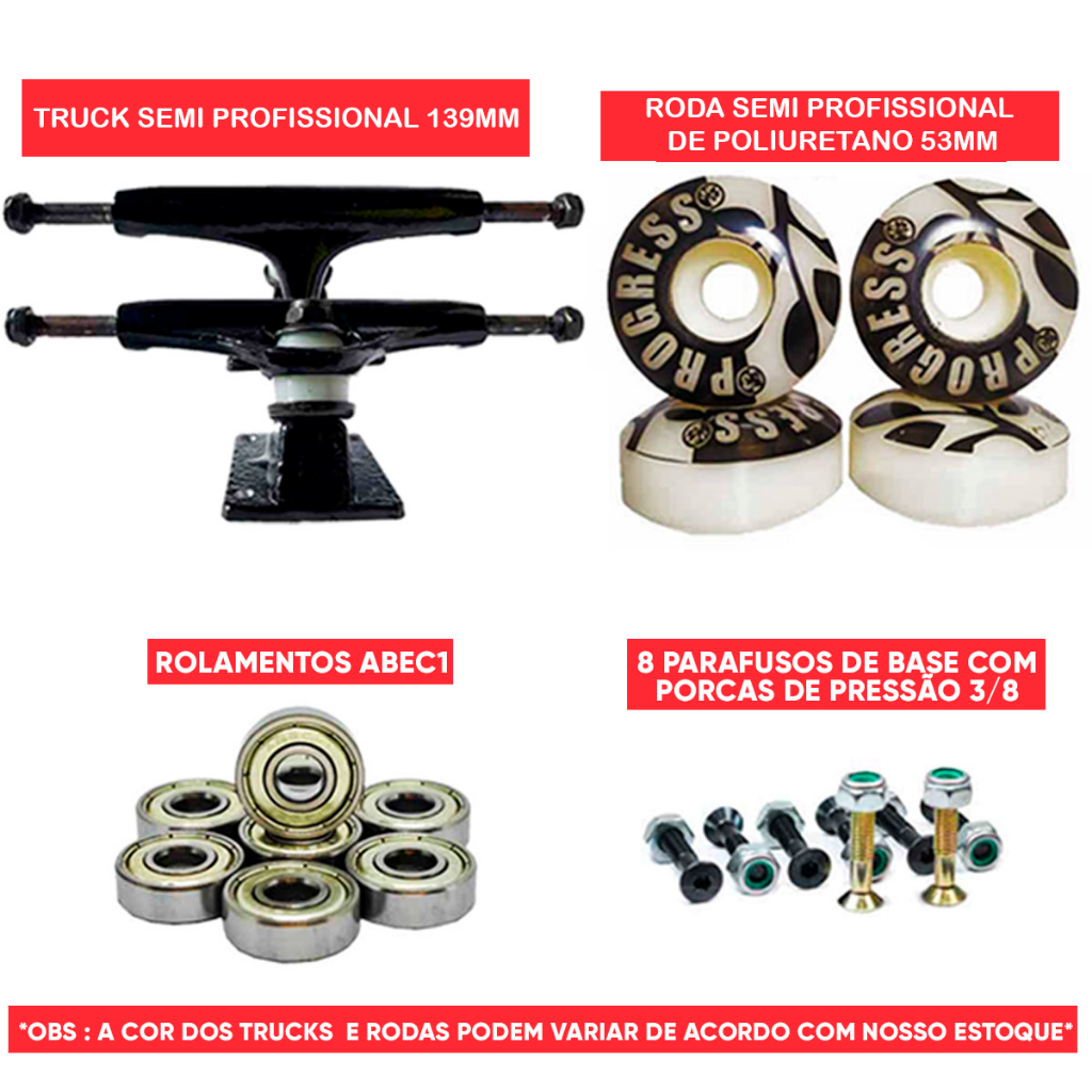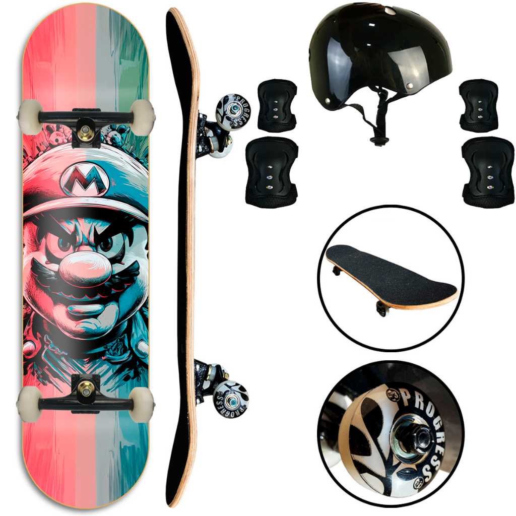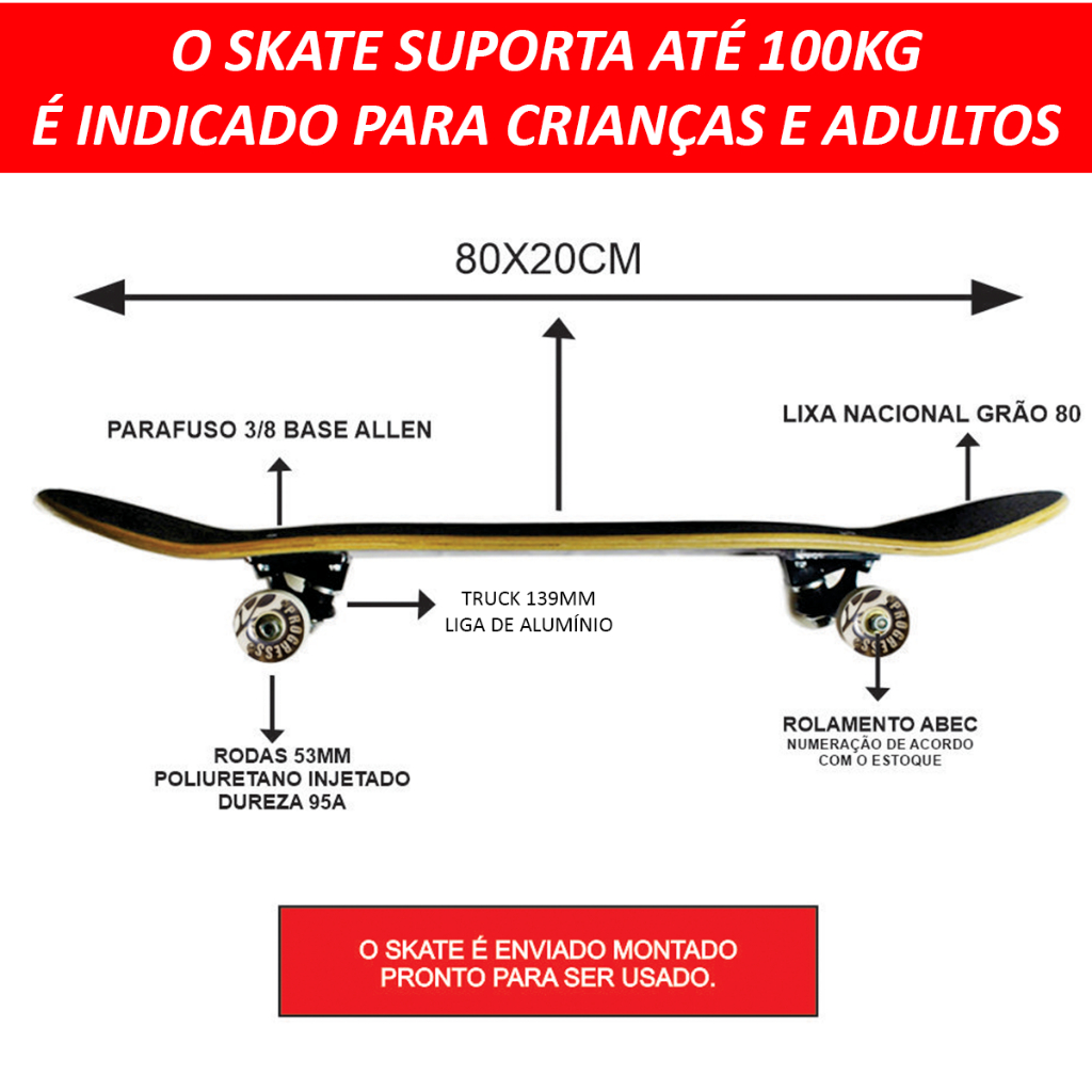 Skate semi profissional monatdo + Kit Proteção Suporta Até 100kg