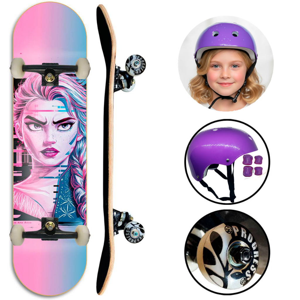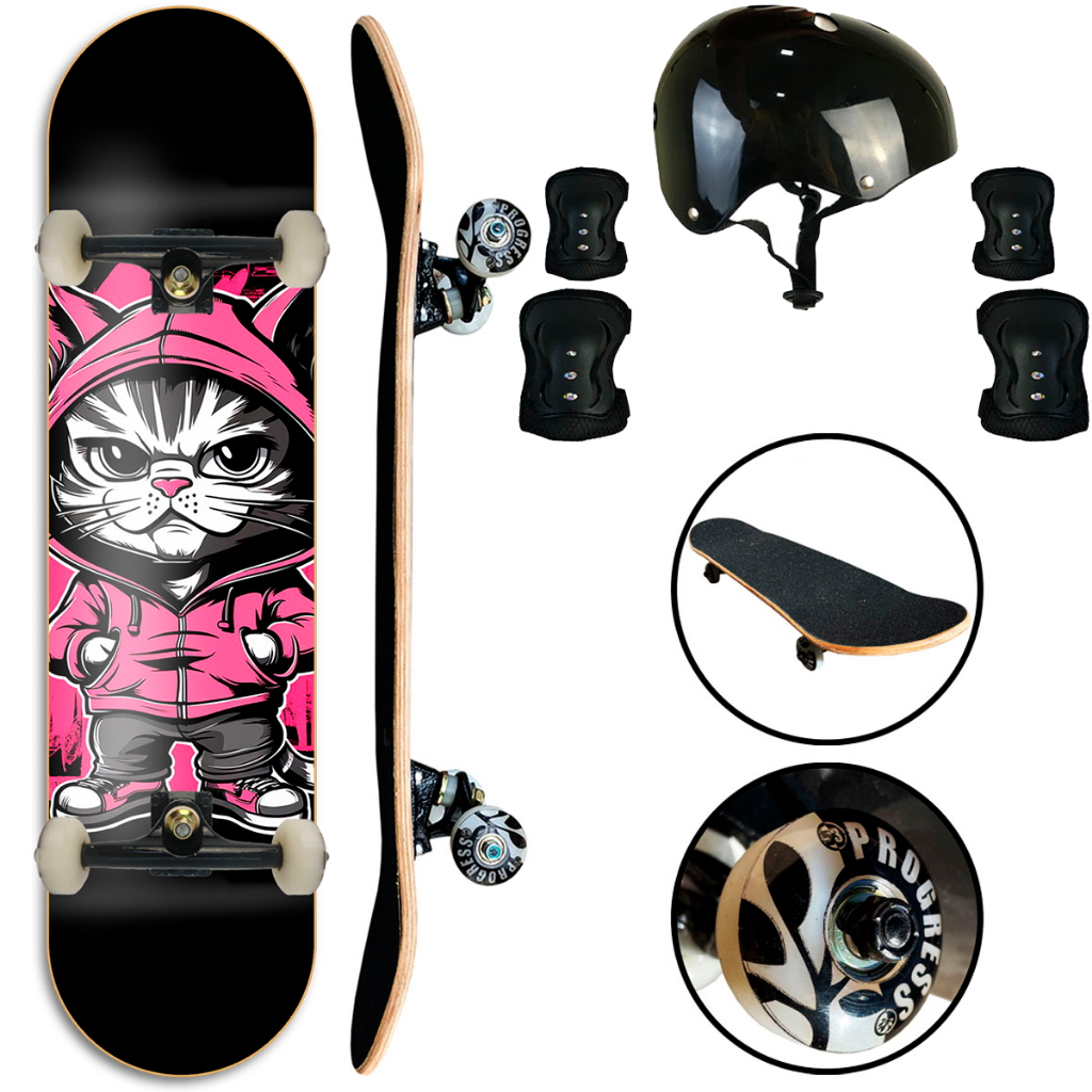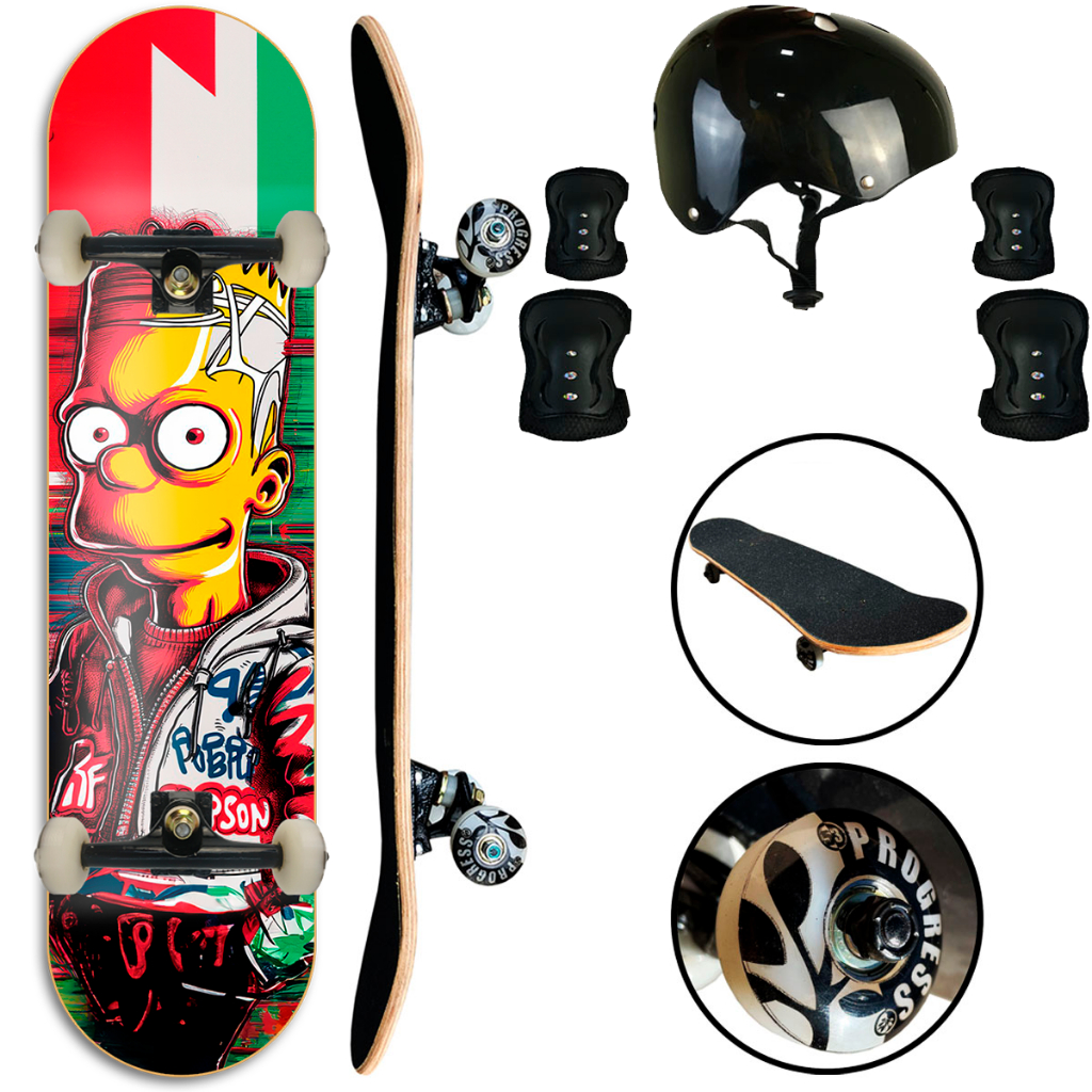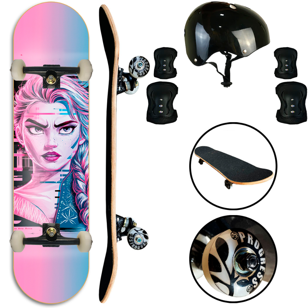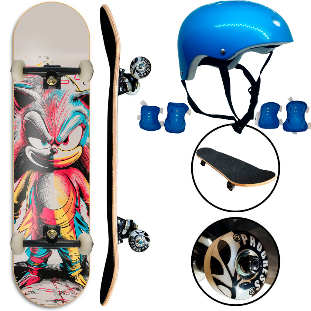 Skate semi profissional monatdo + Kit Proteção Suporta Até 100kg