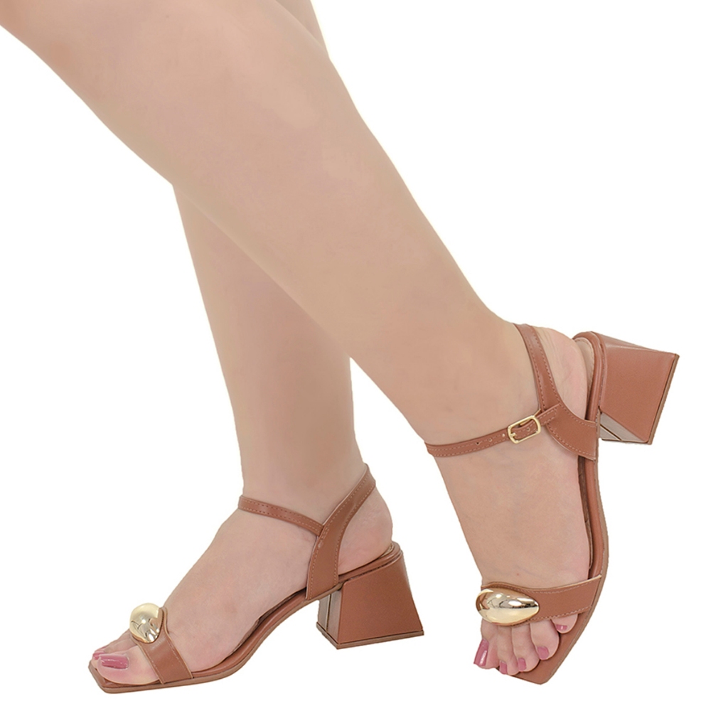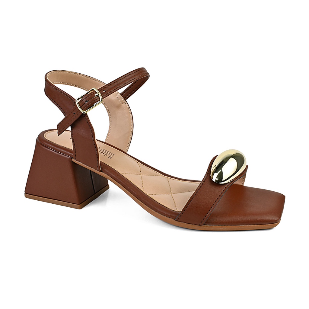 Sandália Feminina Salto Grosso Baixo Médio Lançamento Enfeite Lesma Confortável Casual