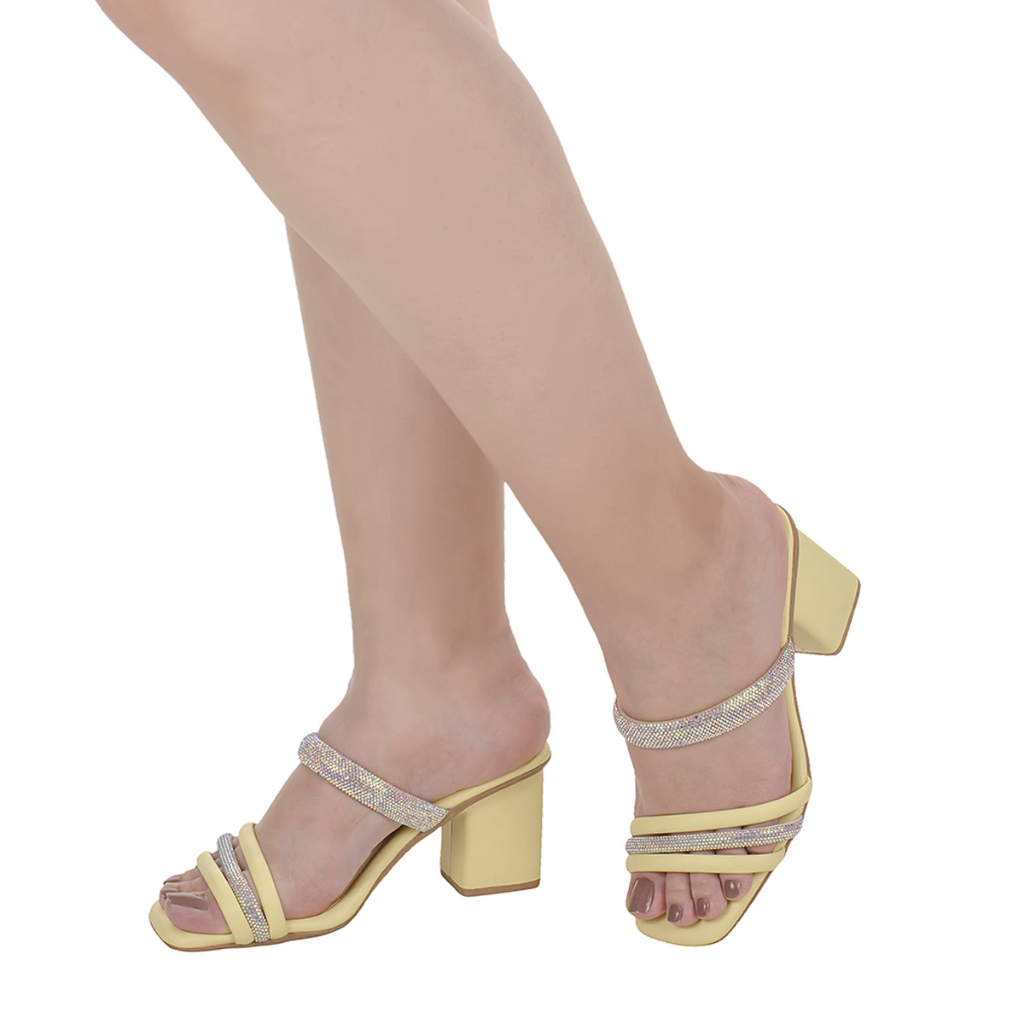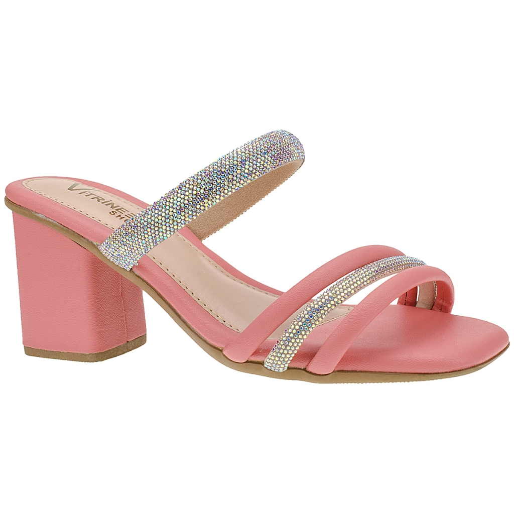 Sandália de Salto Feminina Tamanco com Tira de Brilho