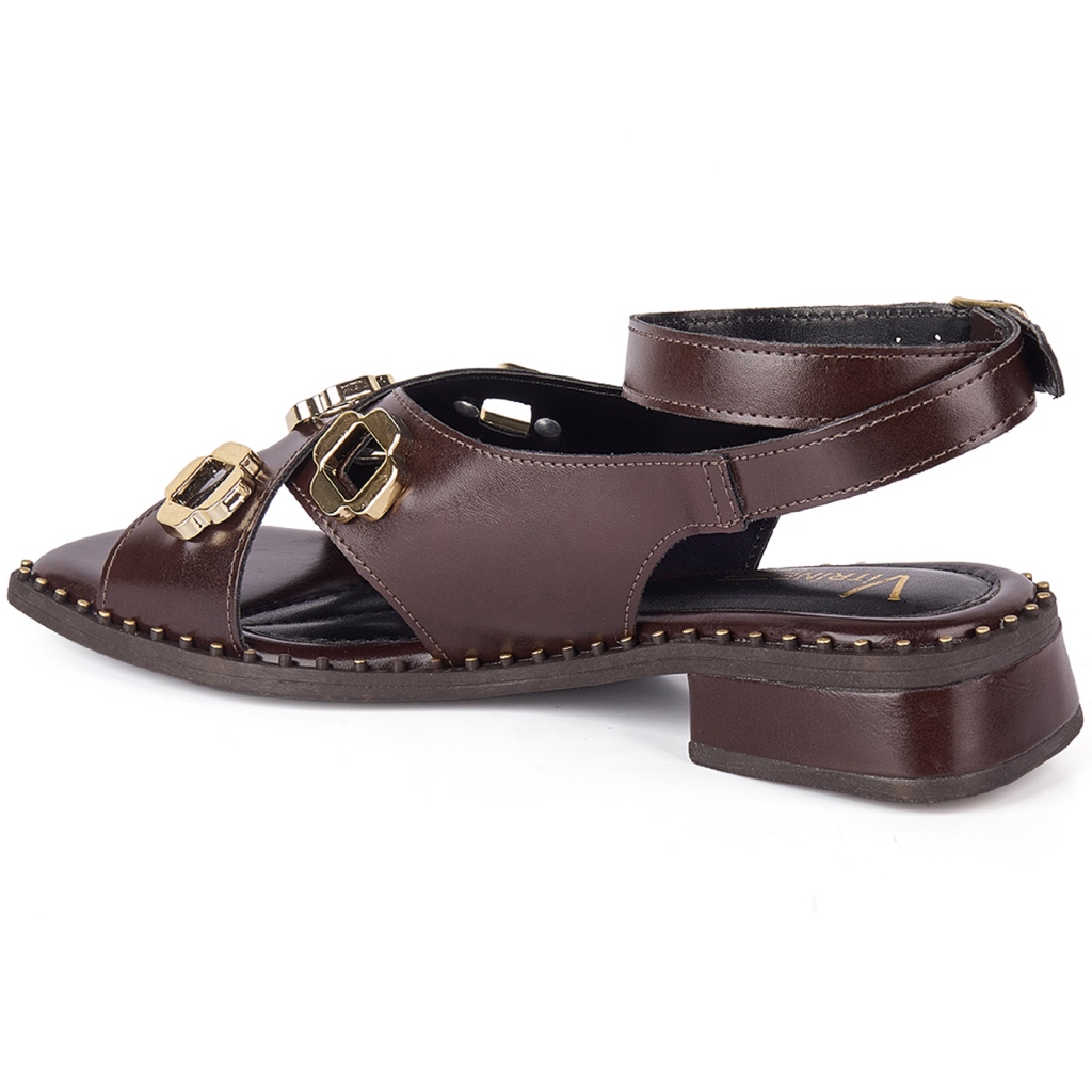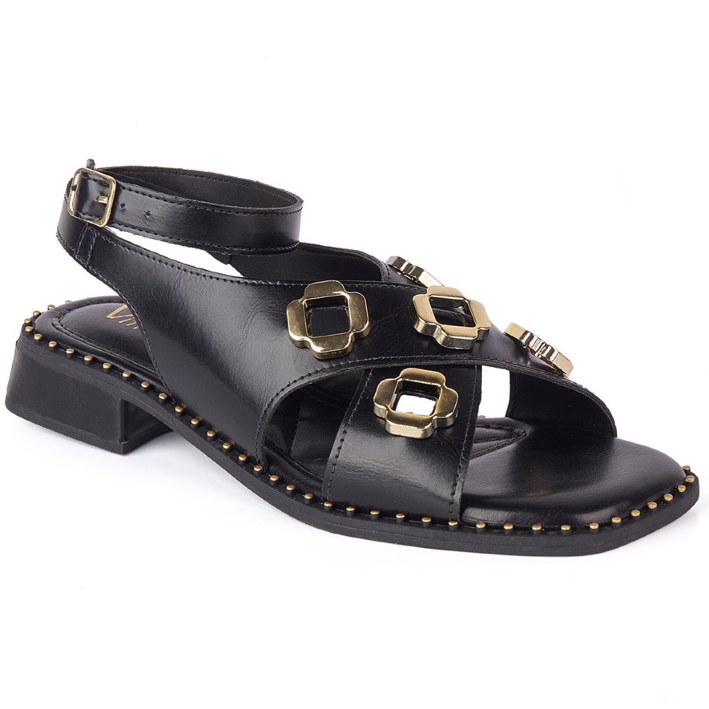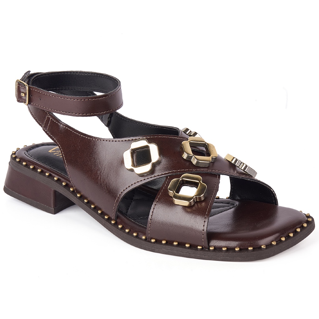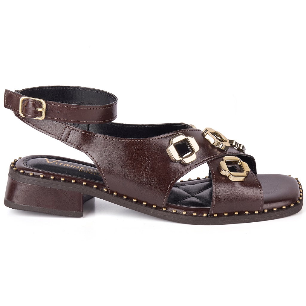 Sandália de Salto Baixo com Apliques dourados Casual Vitrine shoes boho chic