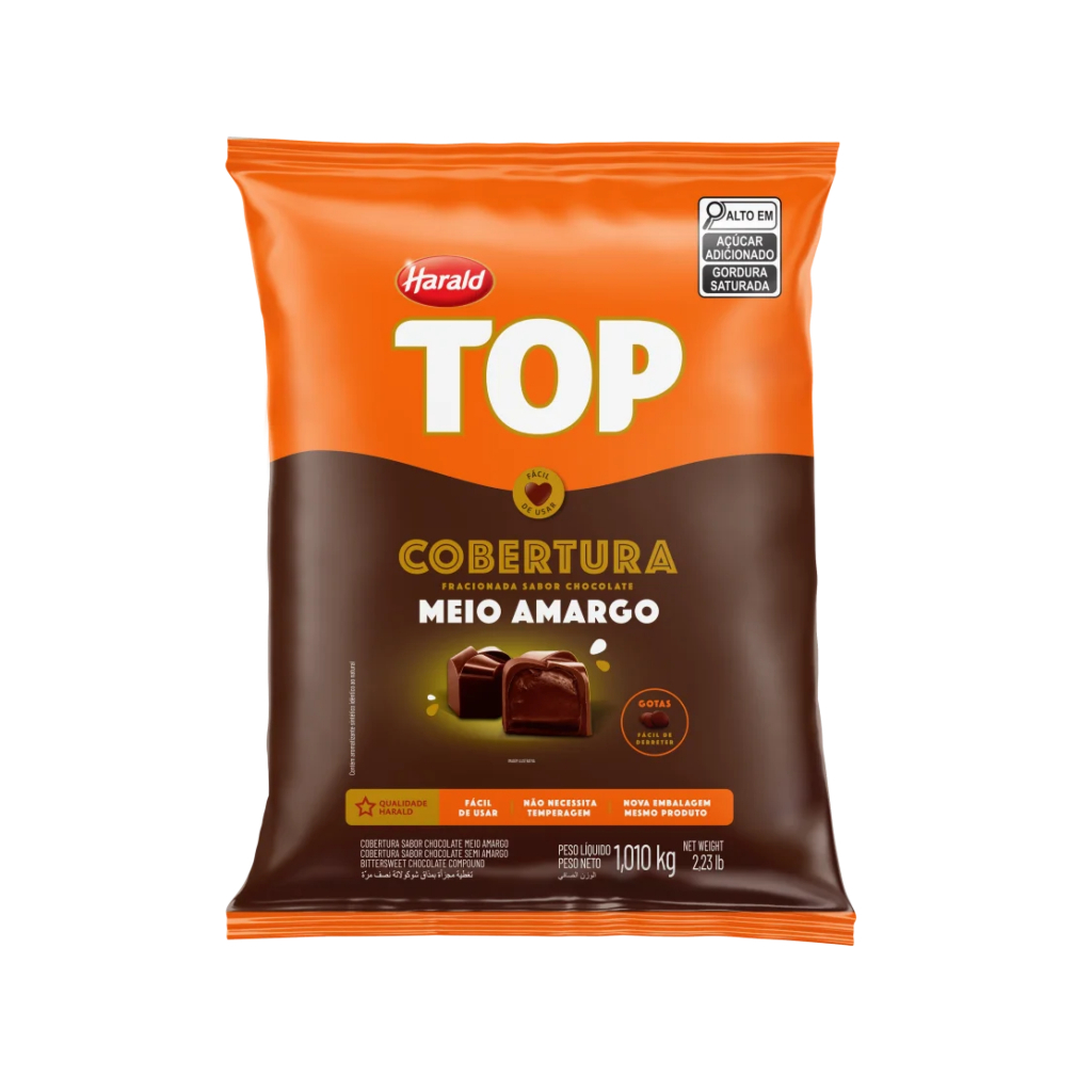 Harald Gotas Cobertura Top Meio Amargo 1,010Kg – Fácil Derretimento e Sabor Intenso