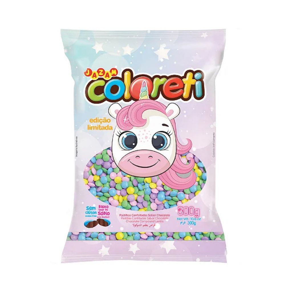 Coloreti Jazam 300g Confeitos de Chocolate Coloridos para Decoração de Bolos e Doces