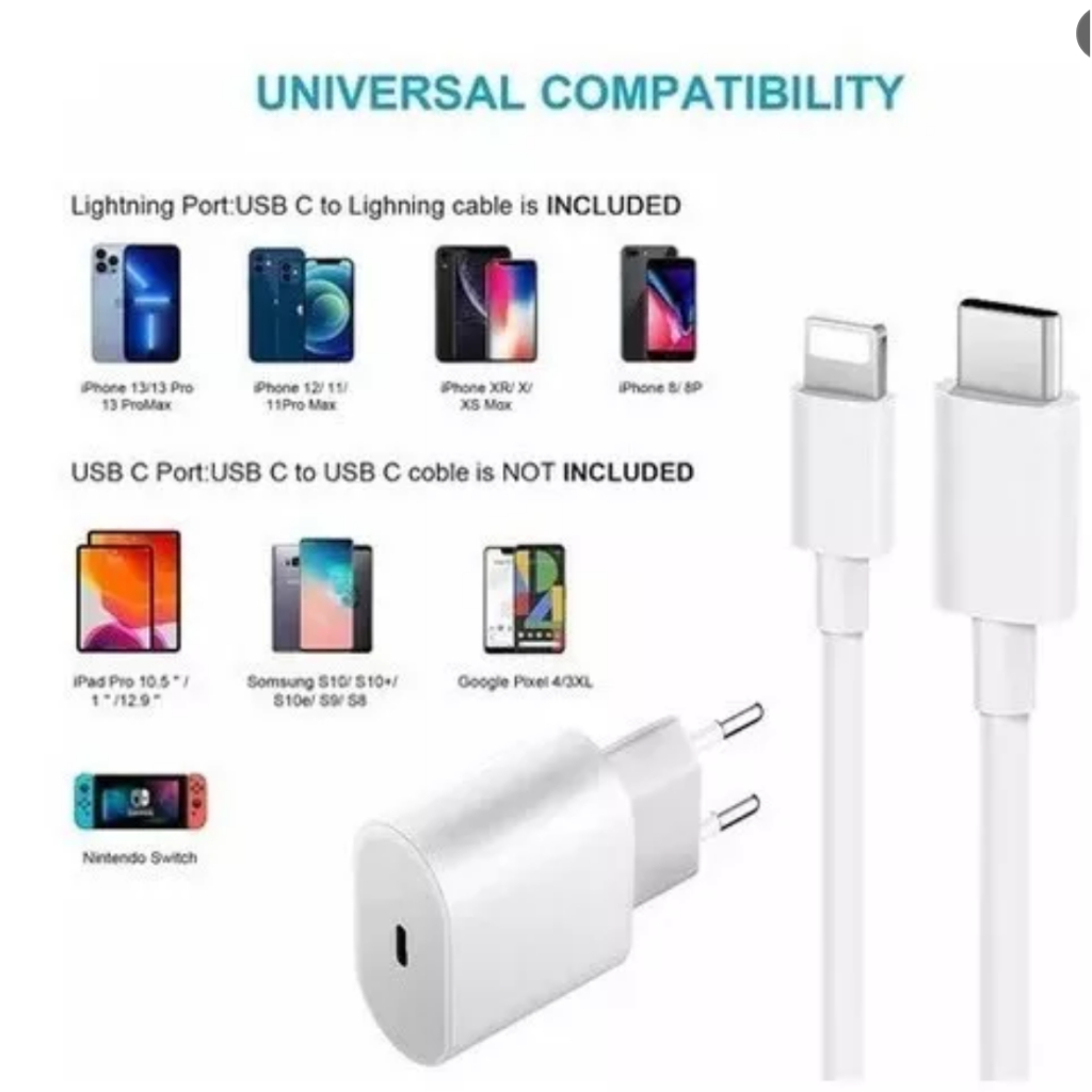 Kit Carregador De iPhone Fonte com Cabo Carregamento Rápido 1m PD 2OW
