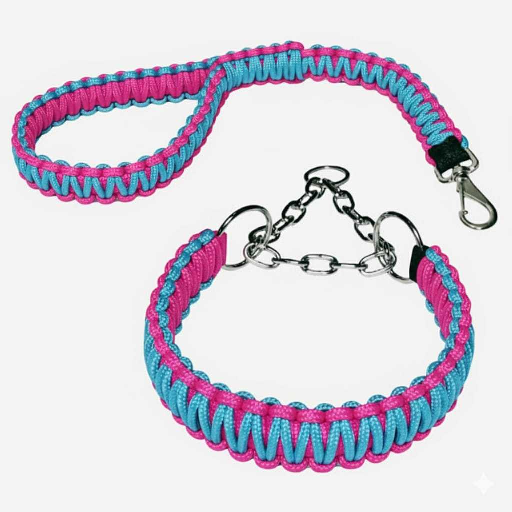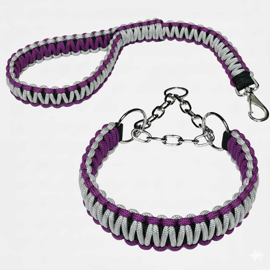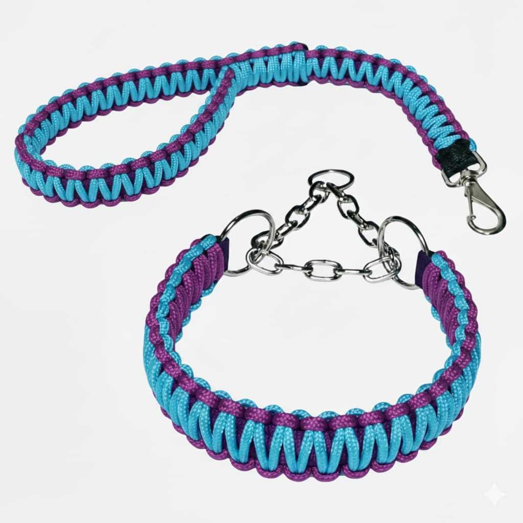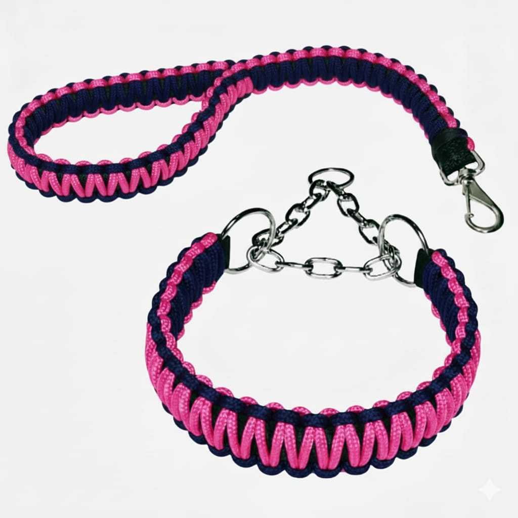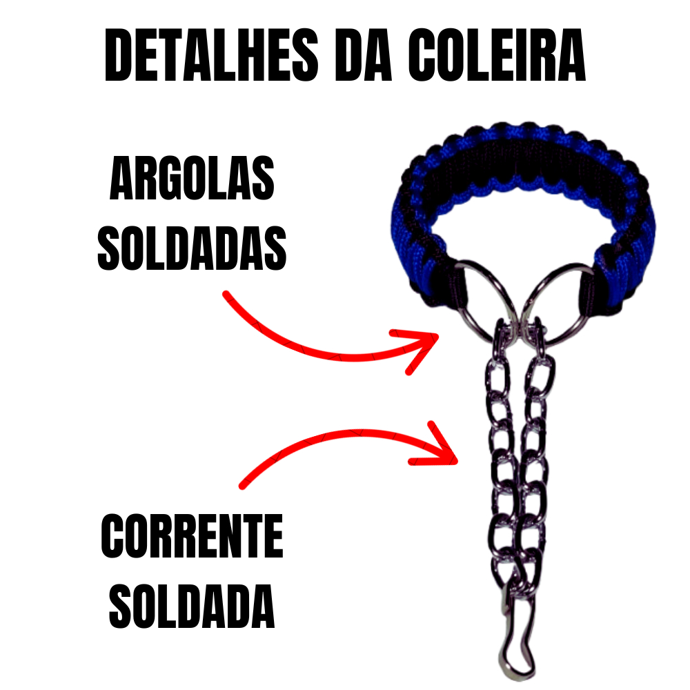 Coleira e Guia para cachorros Grandes e médios. Enforcador trançado reforçado Pitbull e outros.