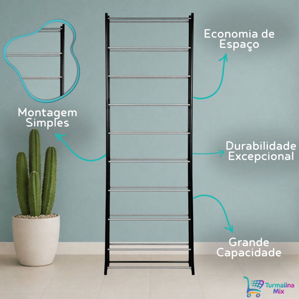 Sapateira Vertical Organizadora 10 Andares Versátil Compacta Vertical 20 Pares De Sapato