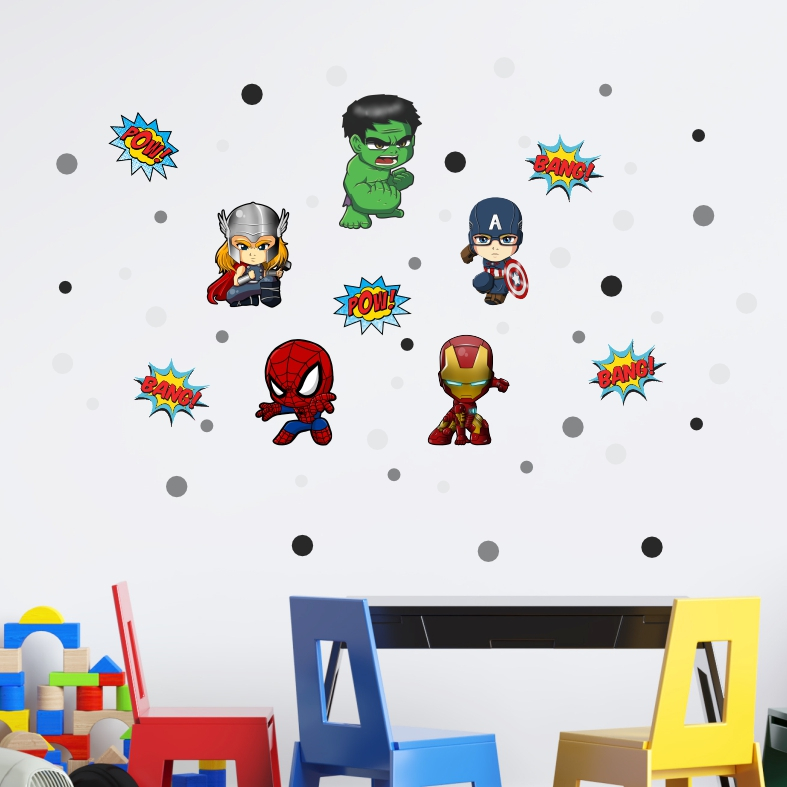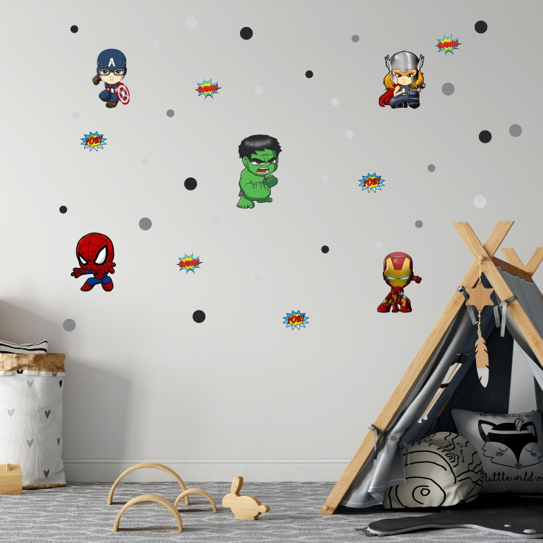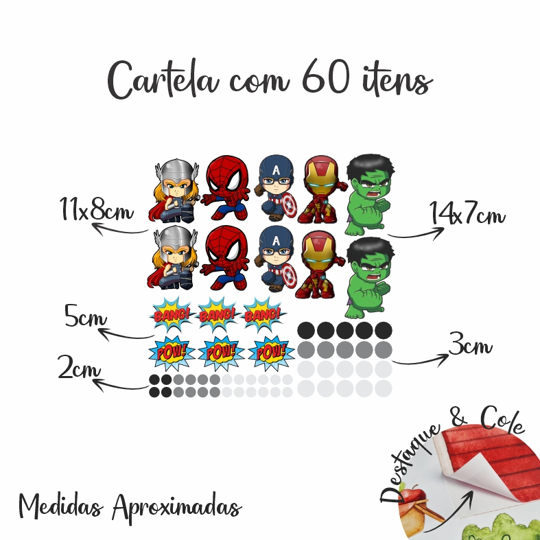 Kit Adesivo de Parede Vingadores Herois Papel Infantil Decoração Quarto de Menino Homem Aranha