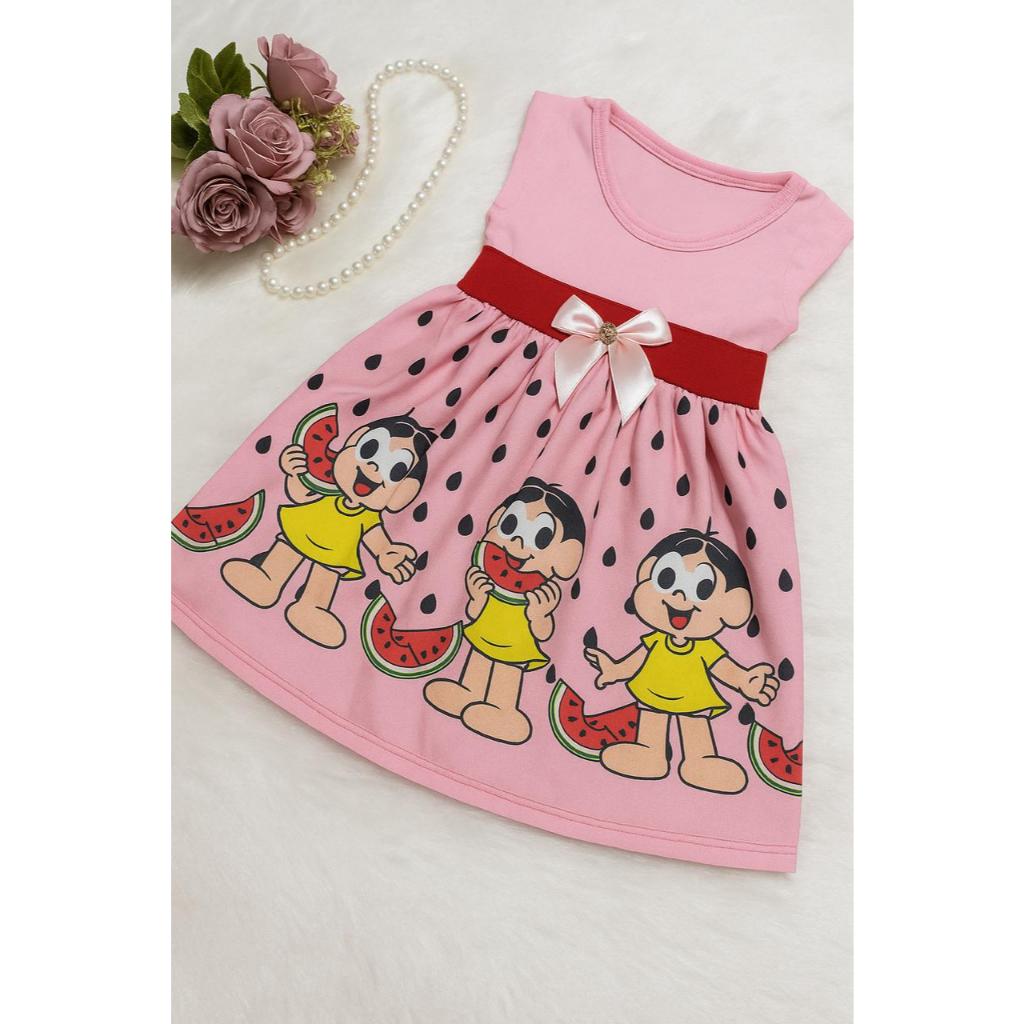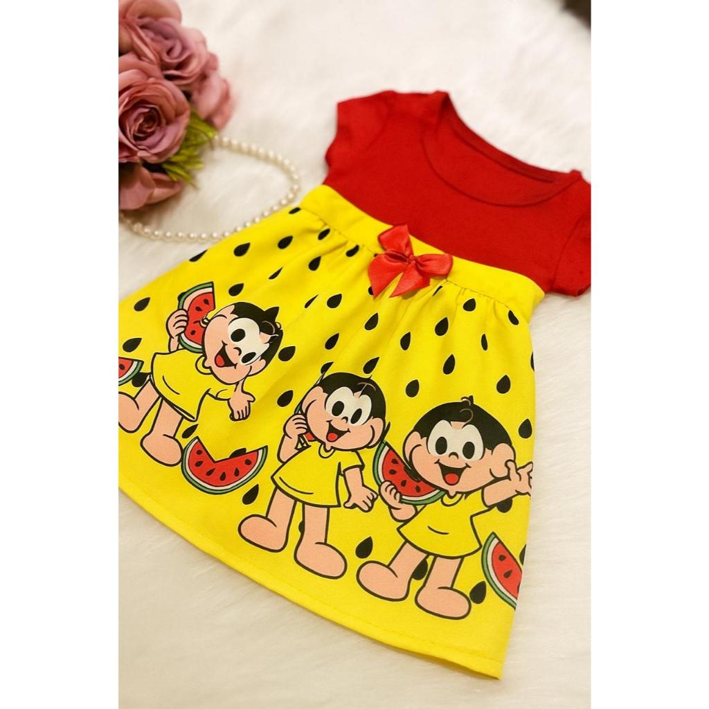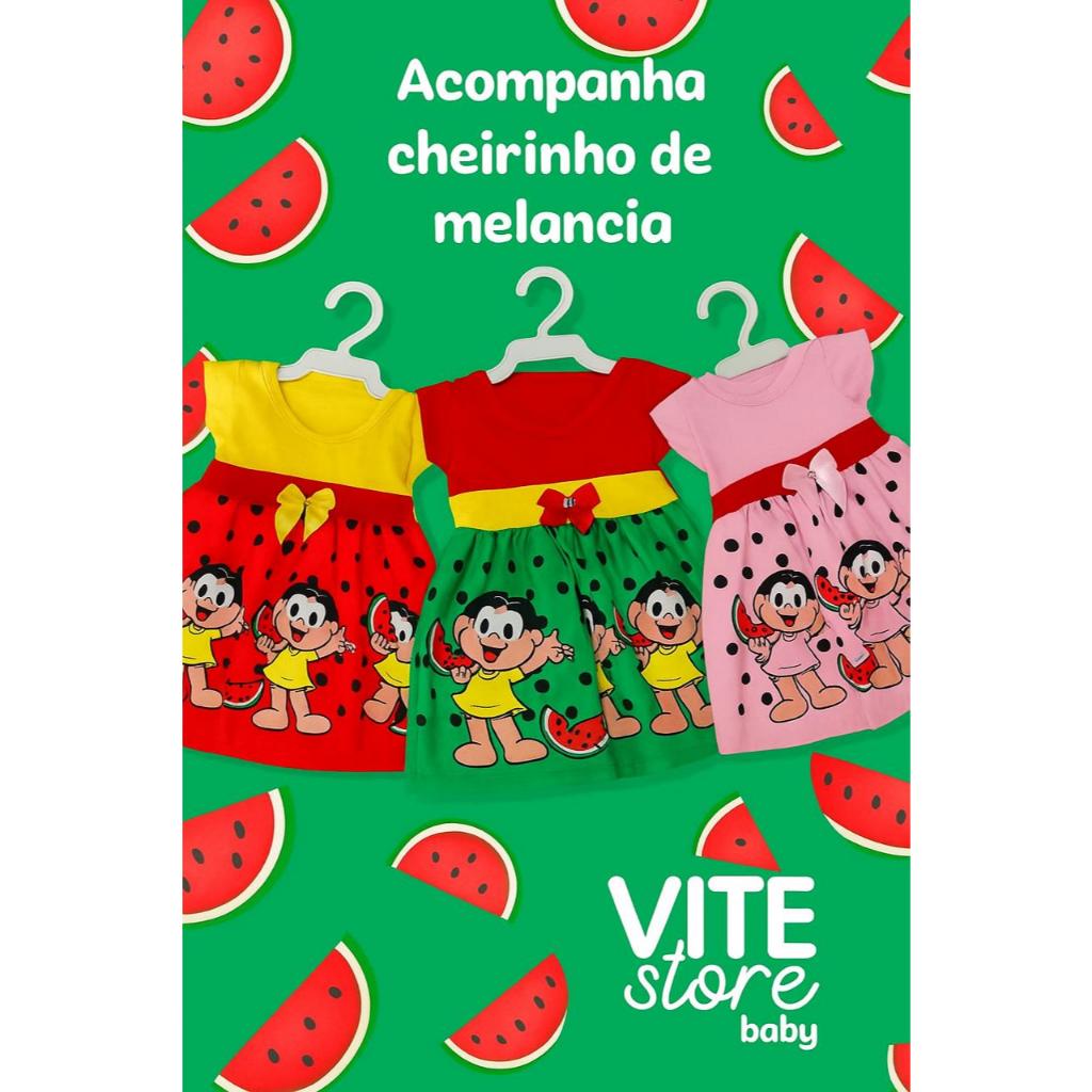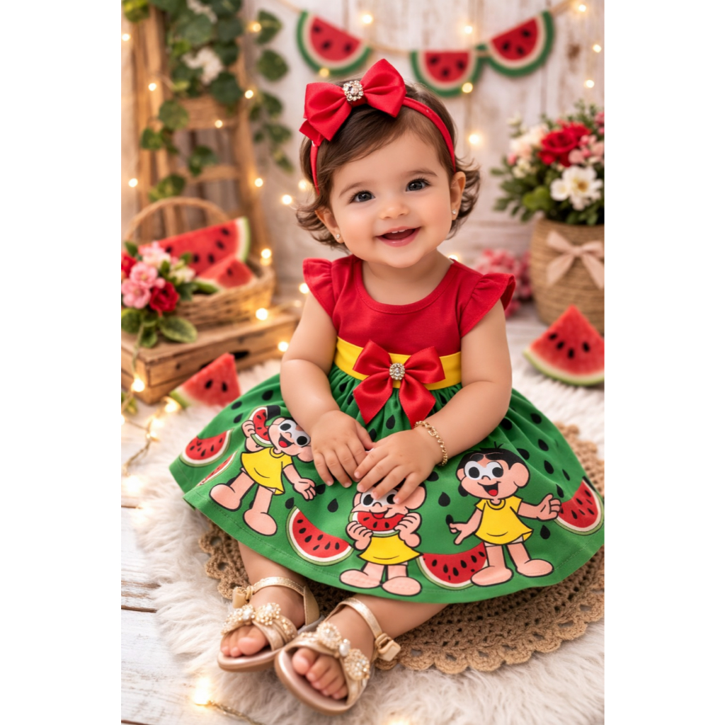 Vestido Temático Desenho Magali Melancia Bebê Turma da Monica mesversario roupa de bebê