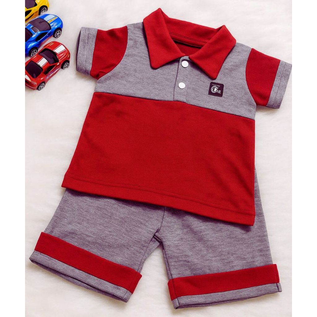 Conjunto Bebê Camisa gola Polo e Shorts Estilo Mauricinho - Camiseta Elegante Baby recém nascido